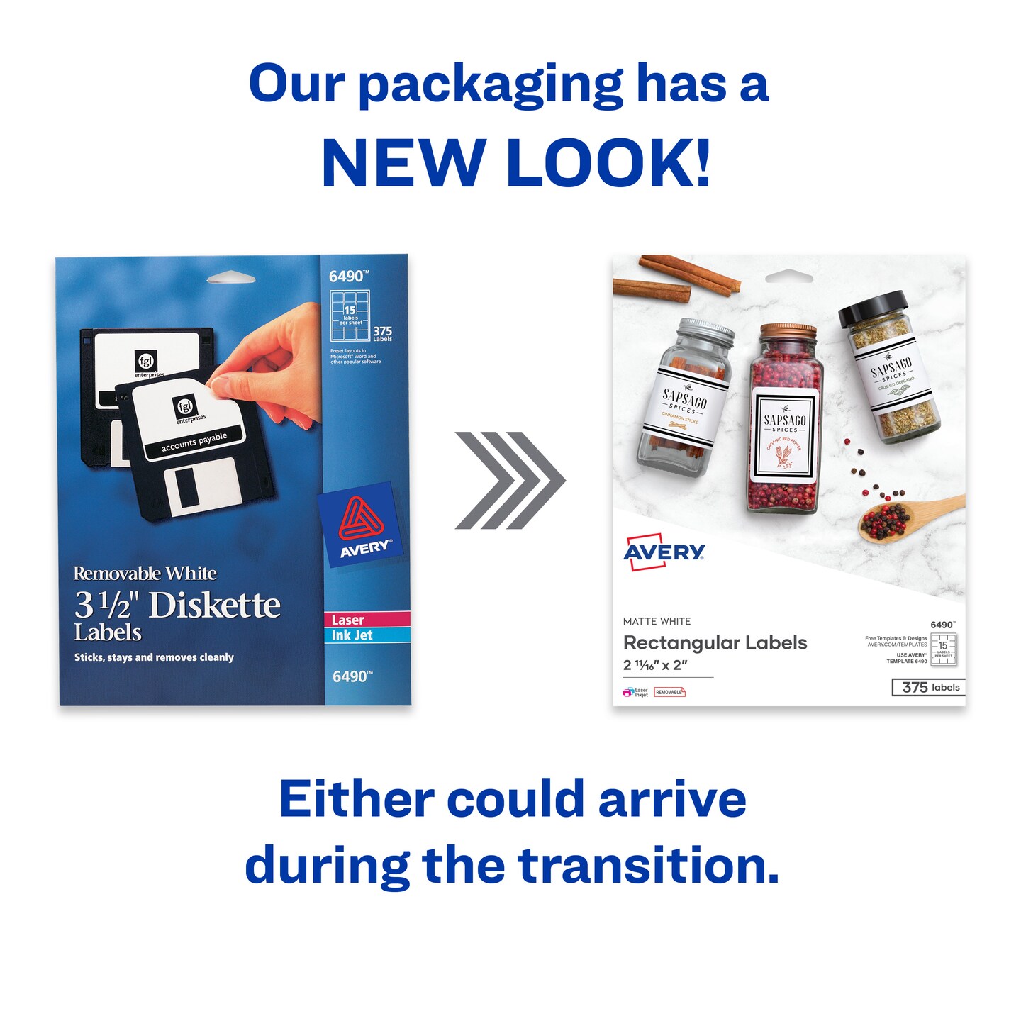 Avery Printable Blank Rectangle Labels, 2-11/16" x 2", Matte White, 375 Customizable Labels (6490)