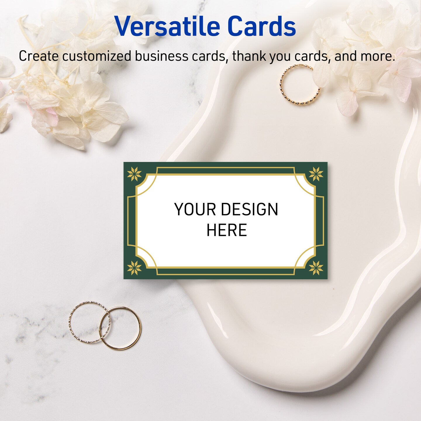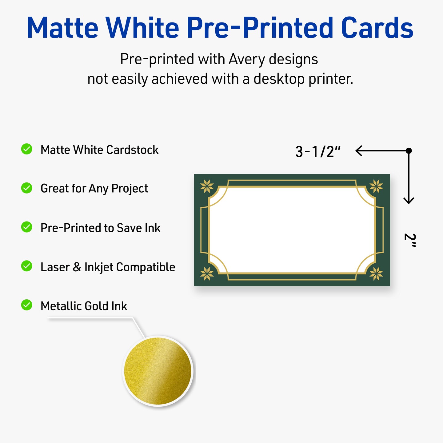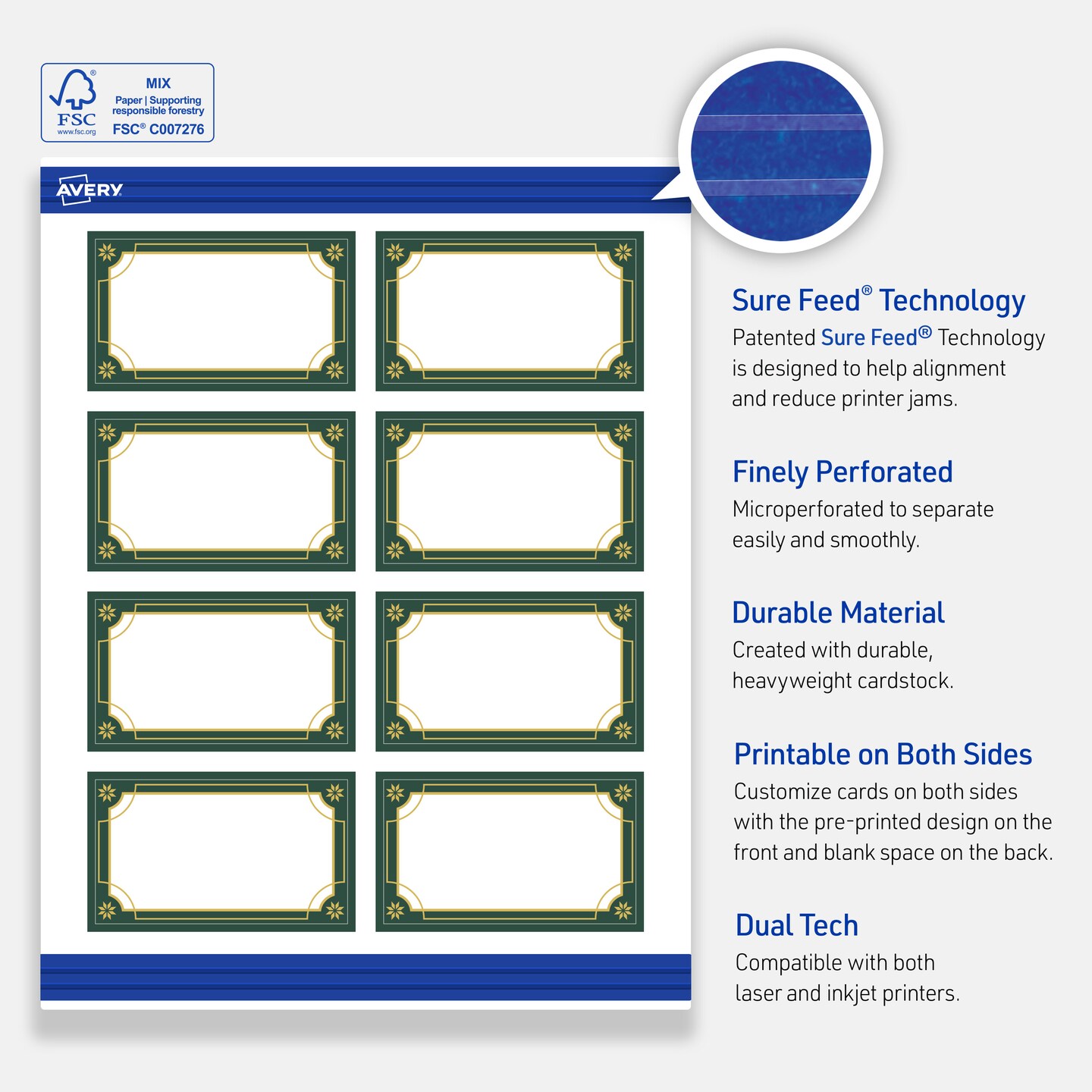 Avery Printable Business Cards with Sure Feed Technology, Rectangle, 2" x 3-1/2", Pre-Printed Green & Metallic Gold Border Design, Matte White, Laser & Inkjet Compatible, 80 Total