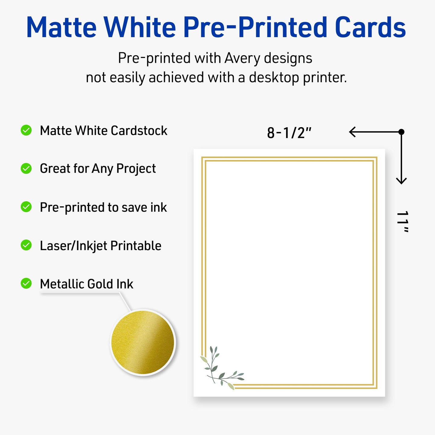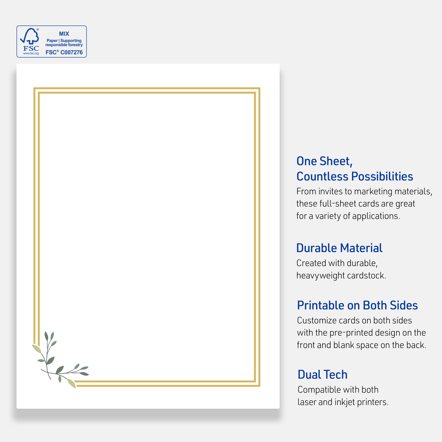Avery Printable Full-Sheet Cardstock, Gold Double Border with Florals, 8.5" x 11", Matte White Full-Sheet Cardstock, Laser/Inkjet, 10ct, Great for Craft Cardstock Paper