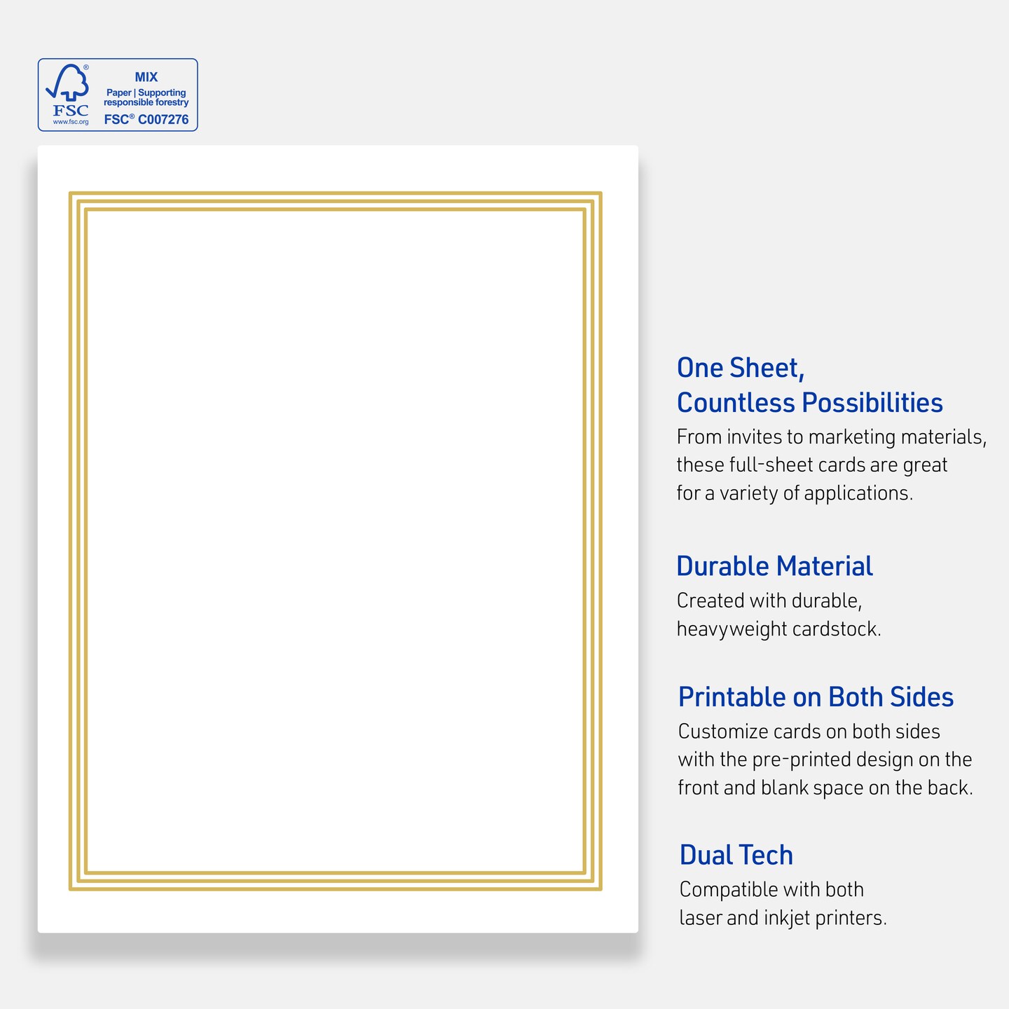 Avery Printable Full-Sheet Cardstock, Gold Multi-Lined Border, 8.5" x 11", Matte White Full-Sheet Cardstock, Laser/Inkjet, 10ct, Great for Craft Cardstock Paper