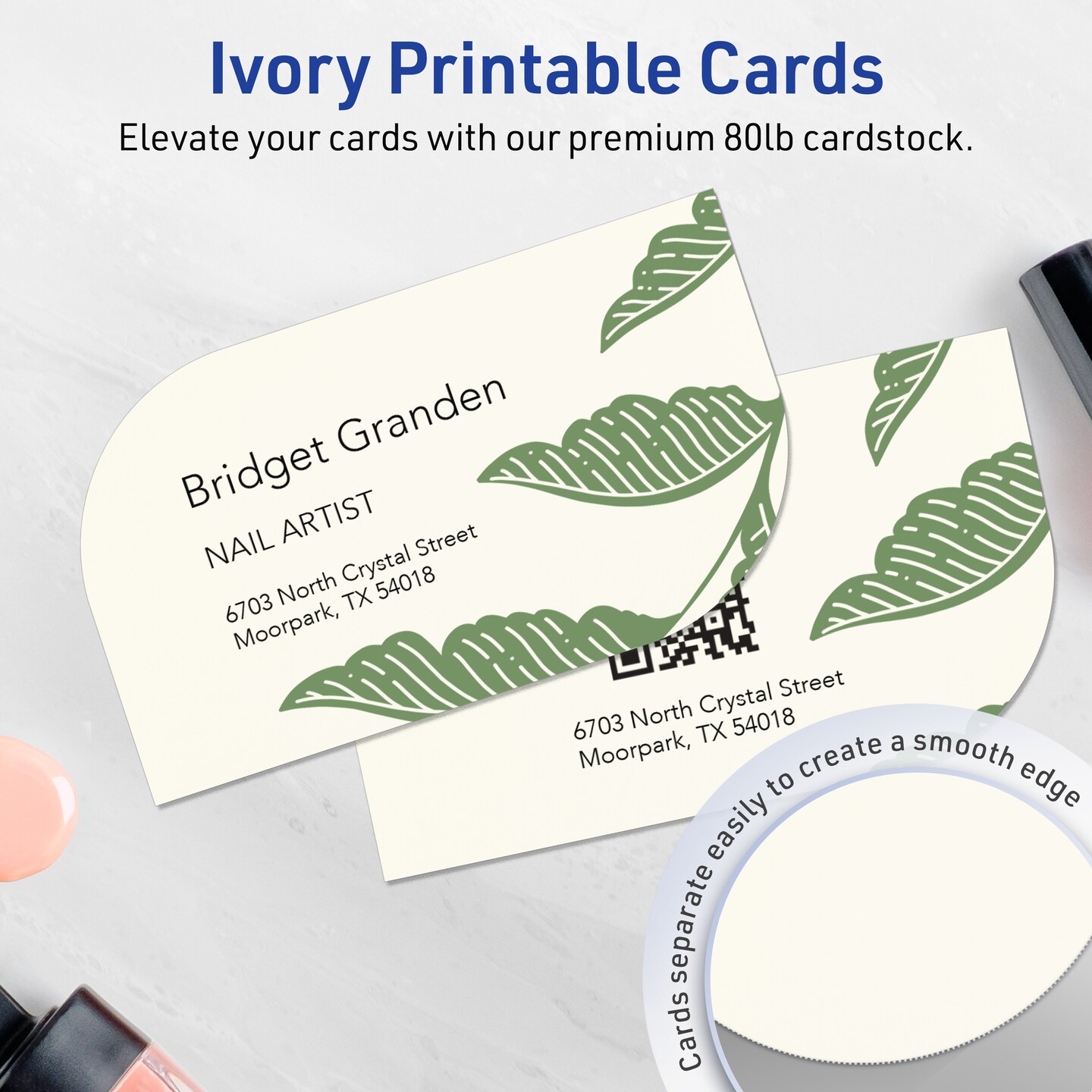 Avery Printable Leaf Business Cards, Sure Feed Technology, 2" x 3-1/2", Matte Ivory Cardstock, Print-to-The-Edge, Laser/Inkjet Printable, 80 Total