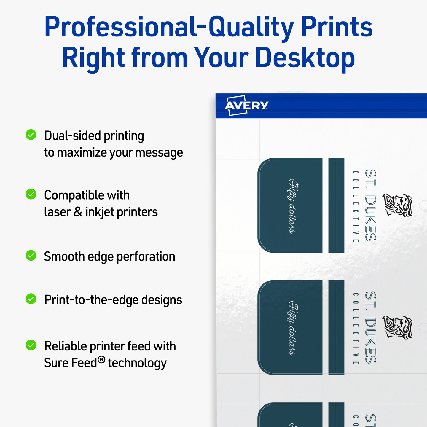 Avery Printable Perforated Rounded Rectangle Price Tags, Sure Feed Technology, 1-1/2" x 3", Glossy White Cardstock, Print-to-The-Edge, Laser/Inkjet Printable, 100 Total