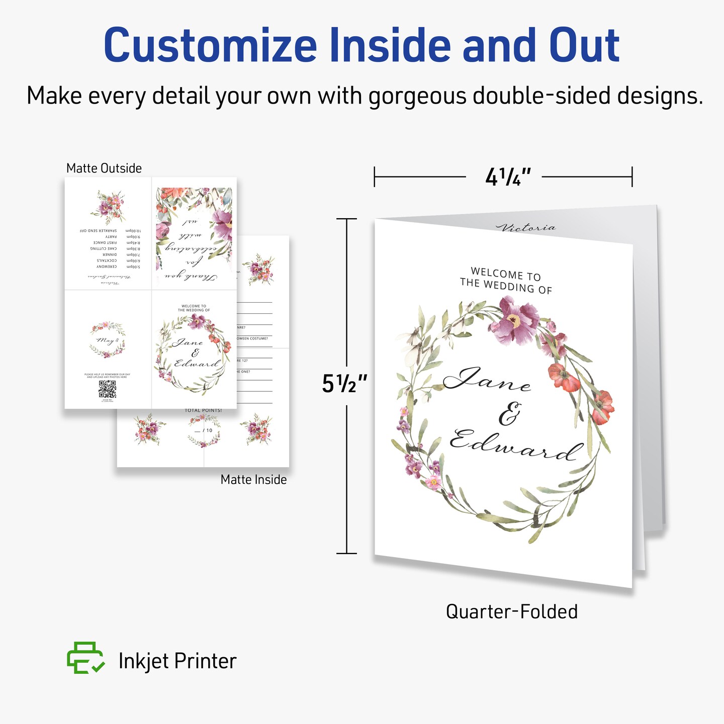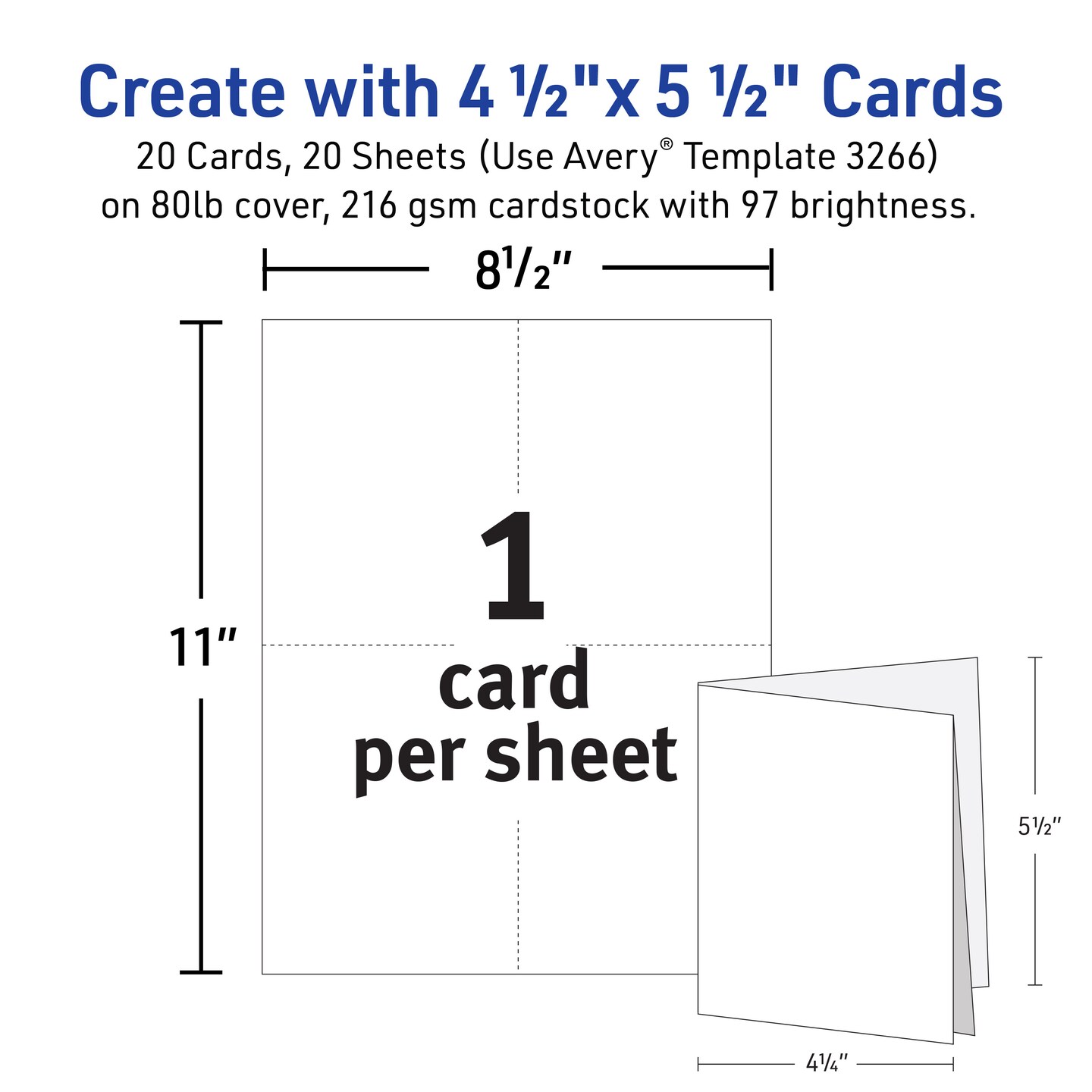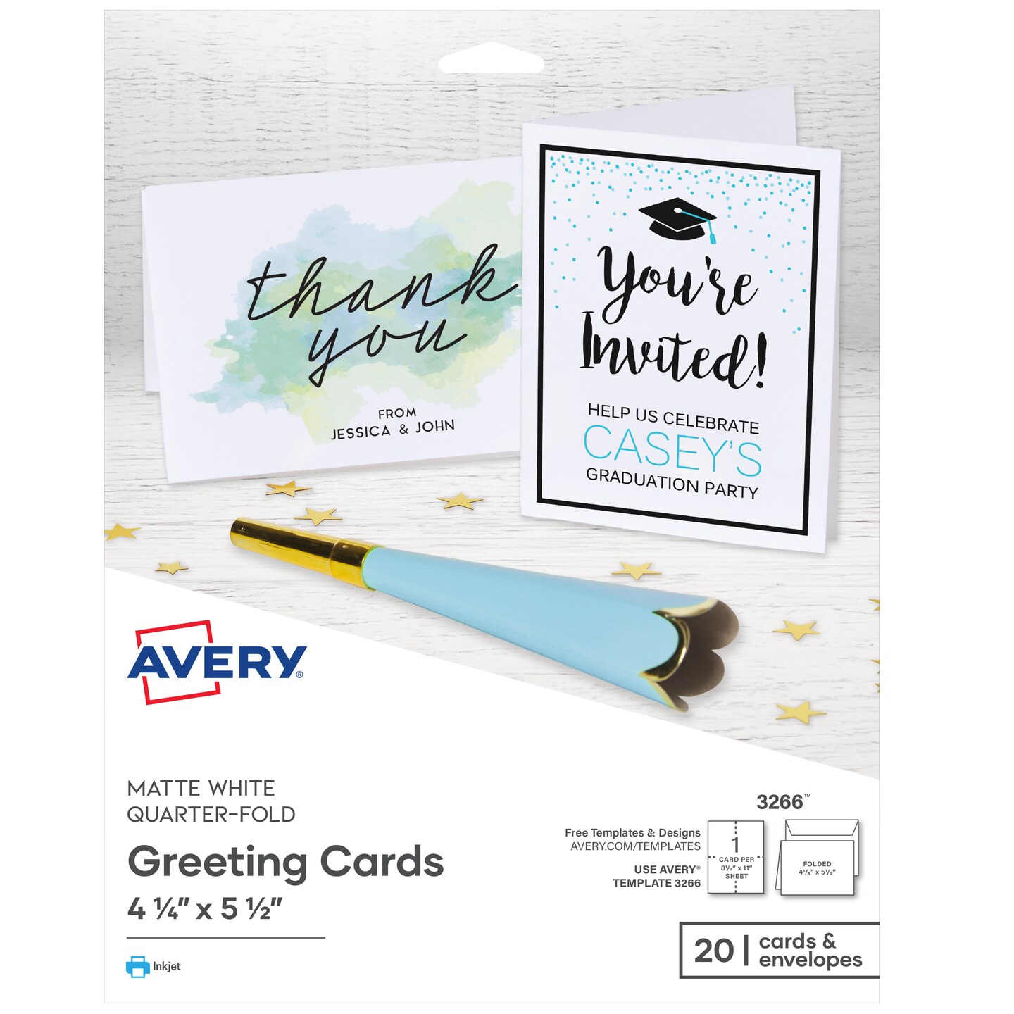 Avery Printable Quarter-Fold Greeting Cards, Envelopes Included, 4.25" x 5.5", Matte White, Inkjet Printer Compatible, 20 Blank Cards Total (3266)
