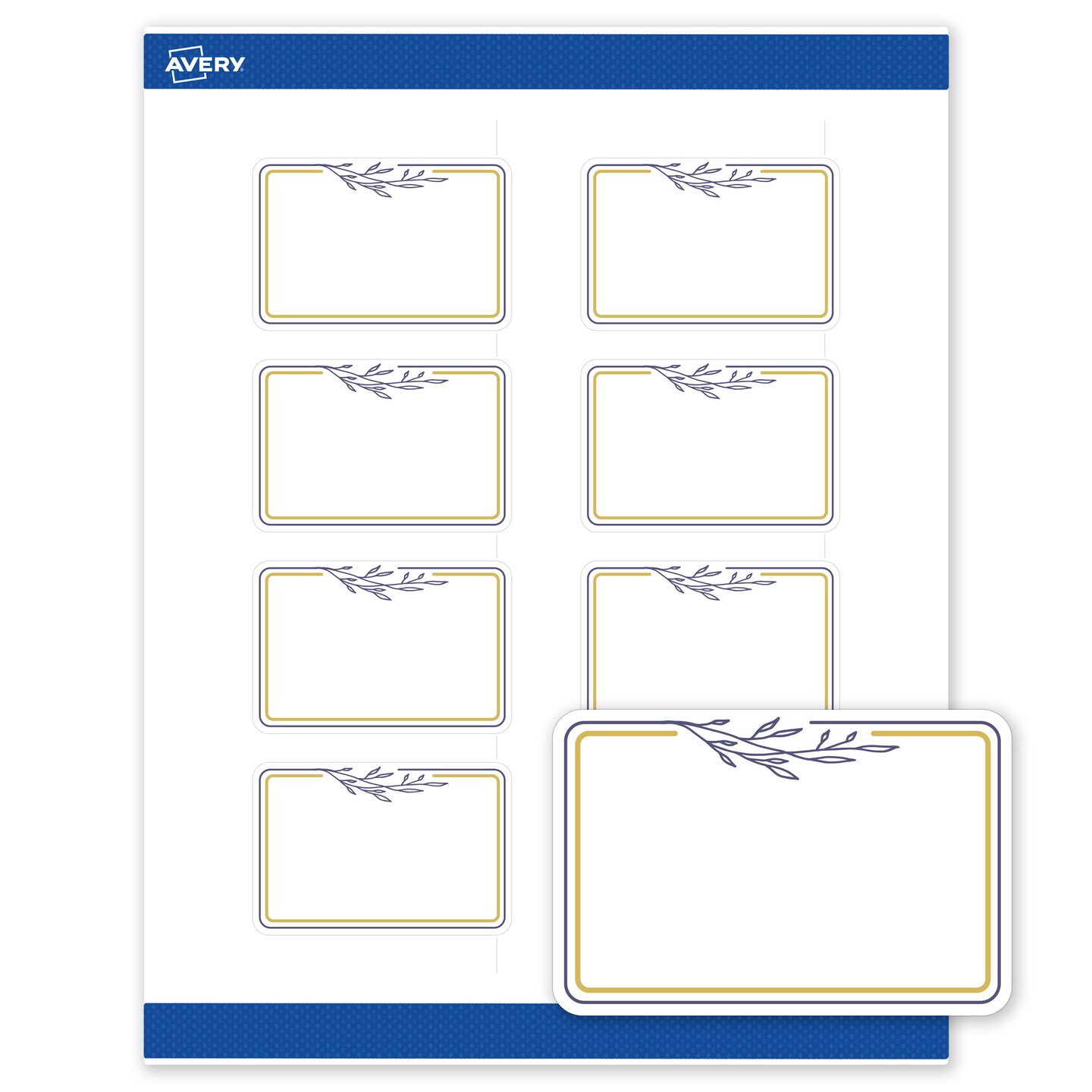 Avery Printable Rectangle Labels, Gold & Navy Border with Florals, 2" x 3", Matte White Rectangle Labels, Permanent, Laser/Inkjet, 80ct, Great for Product Labels