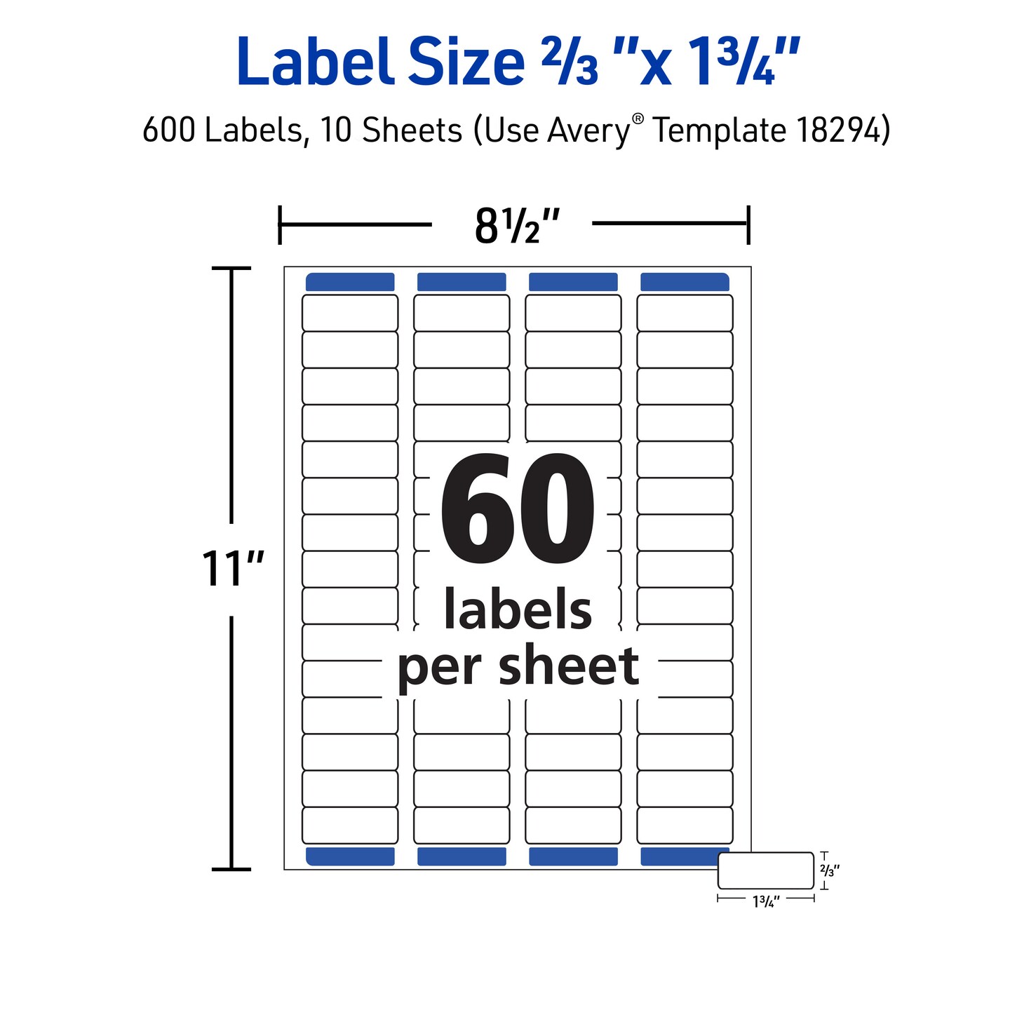 Avery Printable Return Address Labels with Sure Feed Technology, 2/3" x 1-3/4", White, Laser & Inkjet Compatible, 600 Blank Labels Total (18294) - 5 Pack