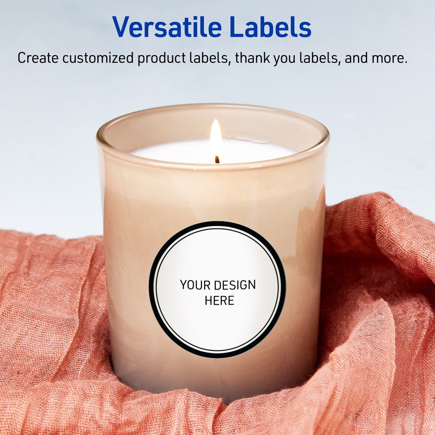 Avery Printable Round Labels, Double Black Border, 3" Diameter, Matte White Round Labels, Permanent, Laser/Inkjet, 60ct, Great for Product Labels