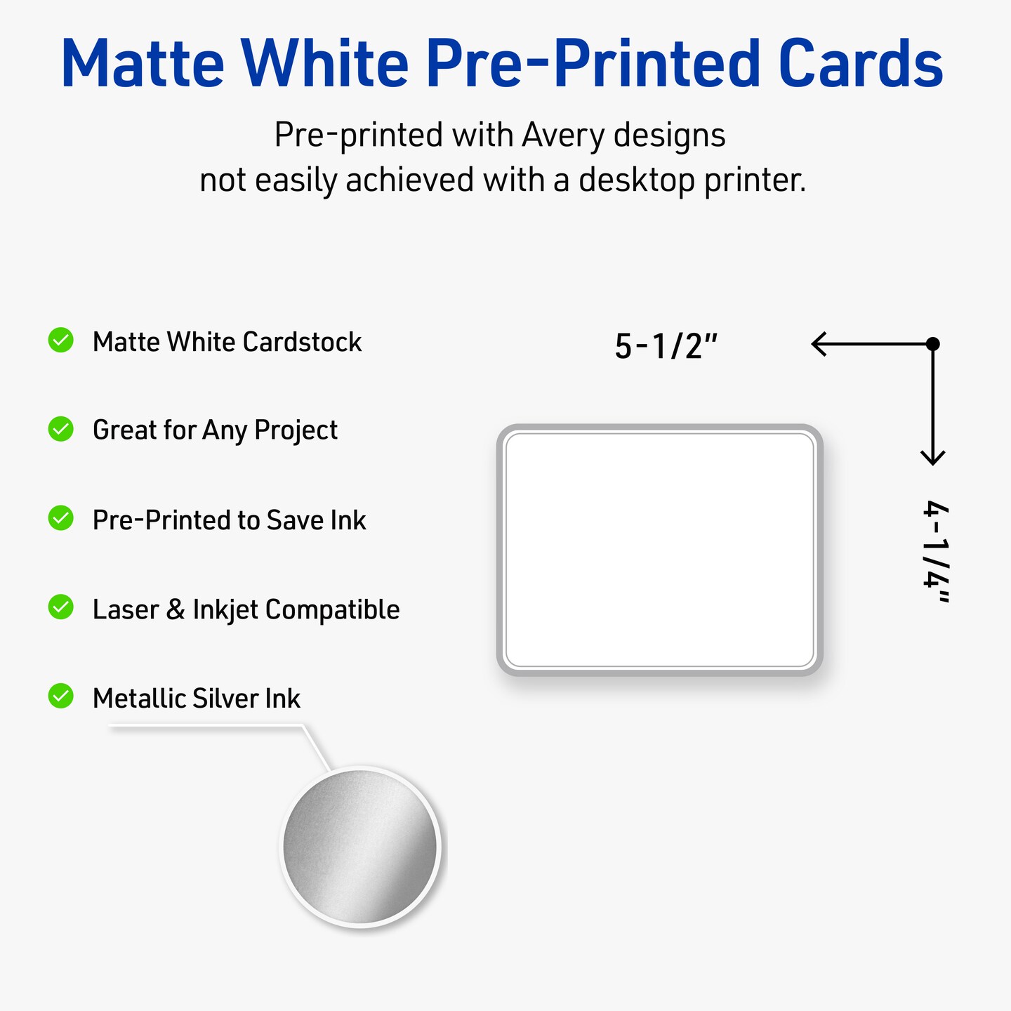 Avery Printable Rounded Corner Postcards with Sure Feed Technology, Pre-Printed Silver Mirror Metallic Design, Matte White, 4-1/4" x 5-1/2", Laser & Inkjet Compatible, 20 Total