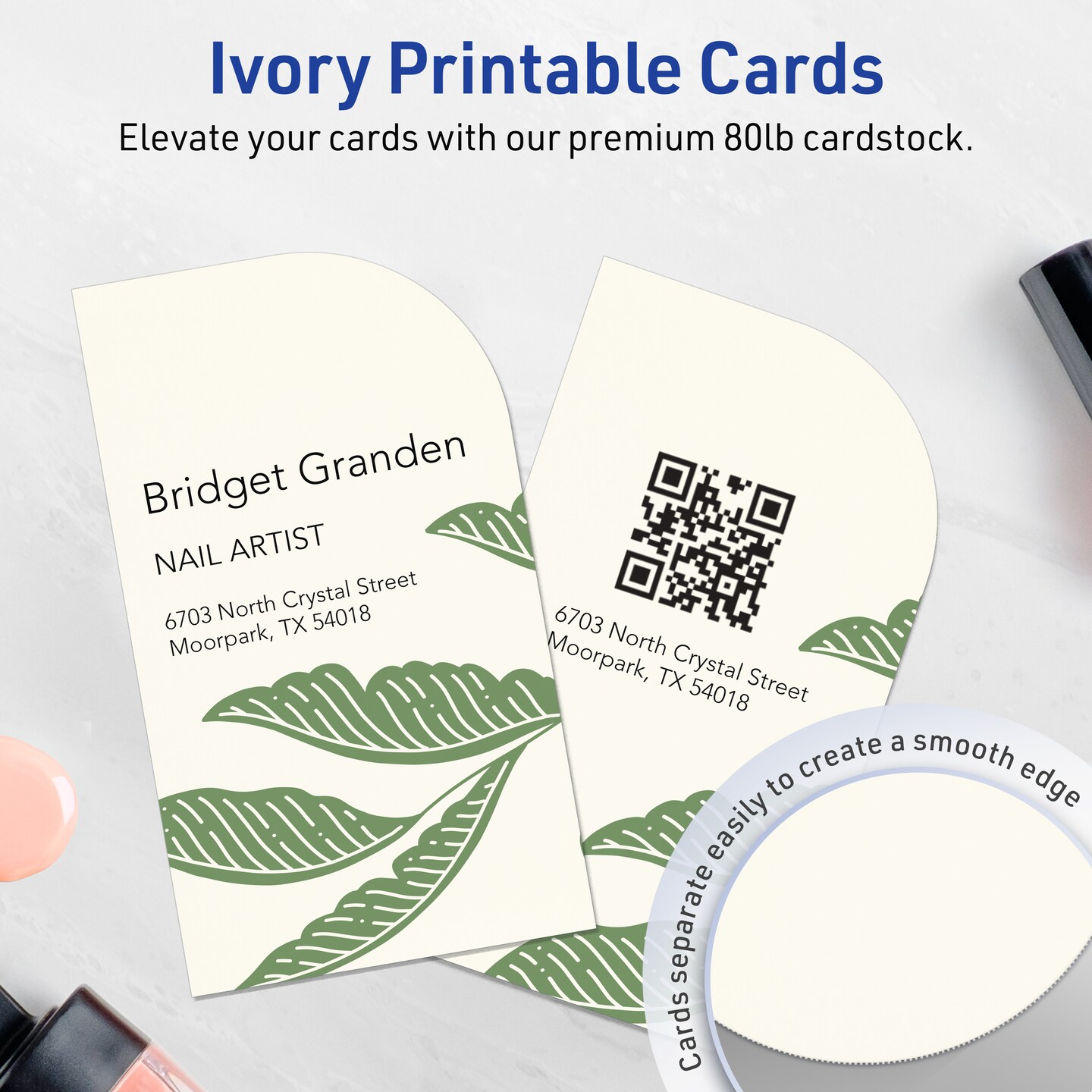Avery Printable Single Rounded Corner Rectangle Business Cards, Sure Feed Technology, 2" x 3-1/2", Matte Ivory Cardstock, Print-to-The-Edge, Laser/Inkjet Printable, 80 Total