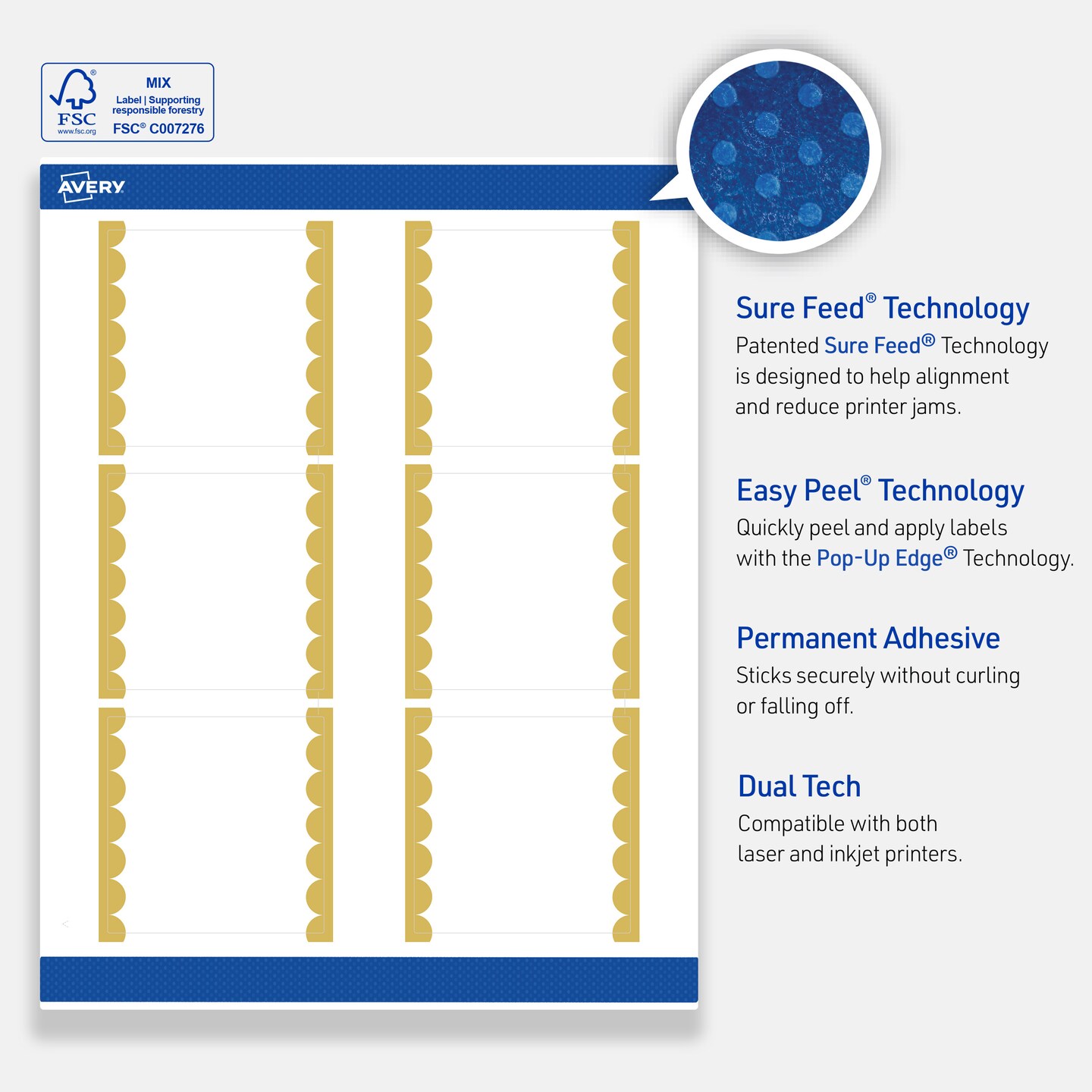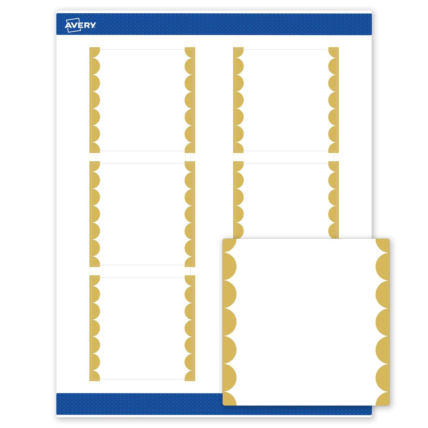 Avery Printable Square Labels, Gold Edge Dots, 3" x 3", Matte White Square Labels, Permanent, Laser/Inkjet, 60ct, Great for Product Labels