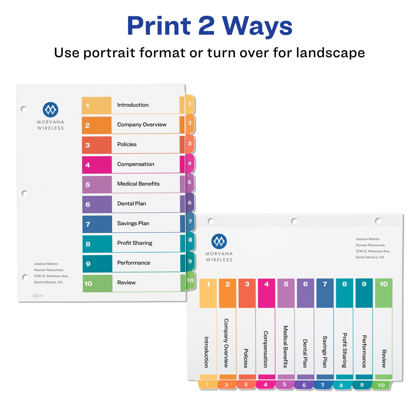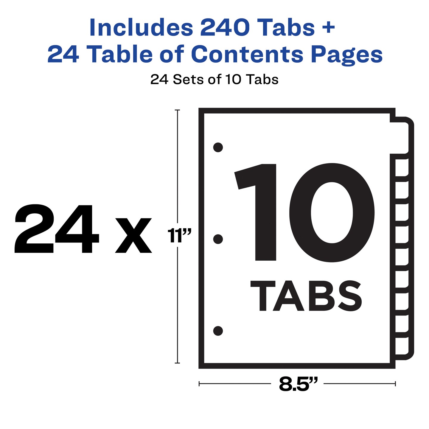 Avery Ready Index 10 Tab Binder Dividers, Customizable Table of Contents, Multicolor Tabs, 24 Sets (11169)