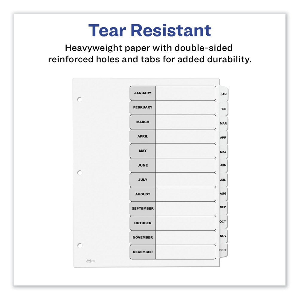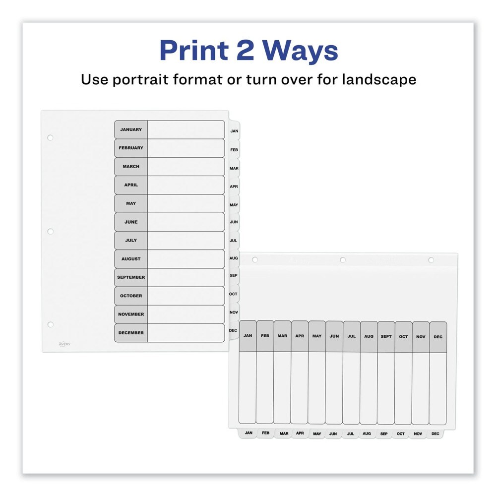 Avery Ready Index 11 in. x 8.5 in. 12-Tab Jan. to Dec. Customizable TOC Dividers - Black and White (1-Set)