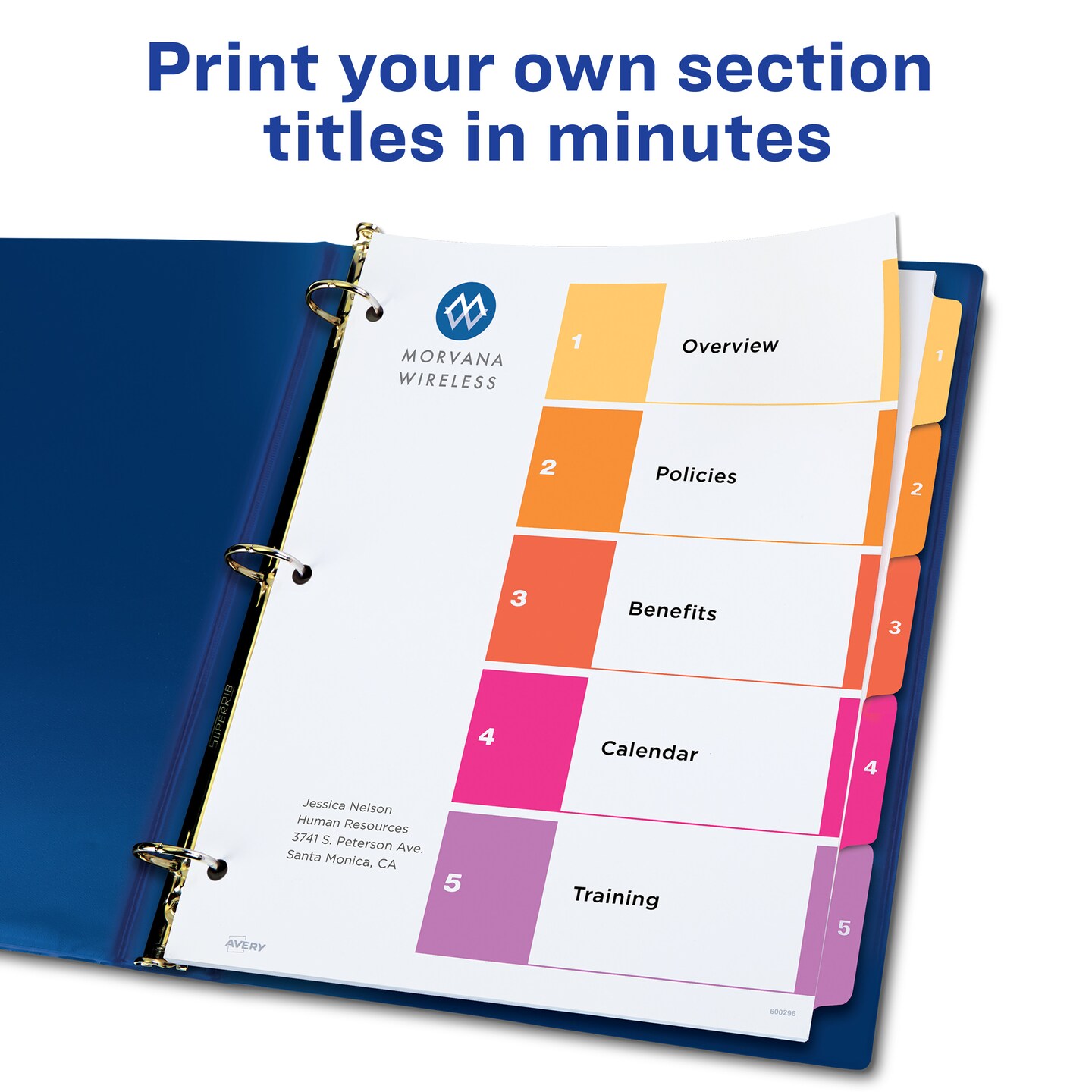 Avery Ready Index 5 Tab Binder Dividers, Customizable Table of Contents, Multicolor Tabs, 6 Sets (11187)