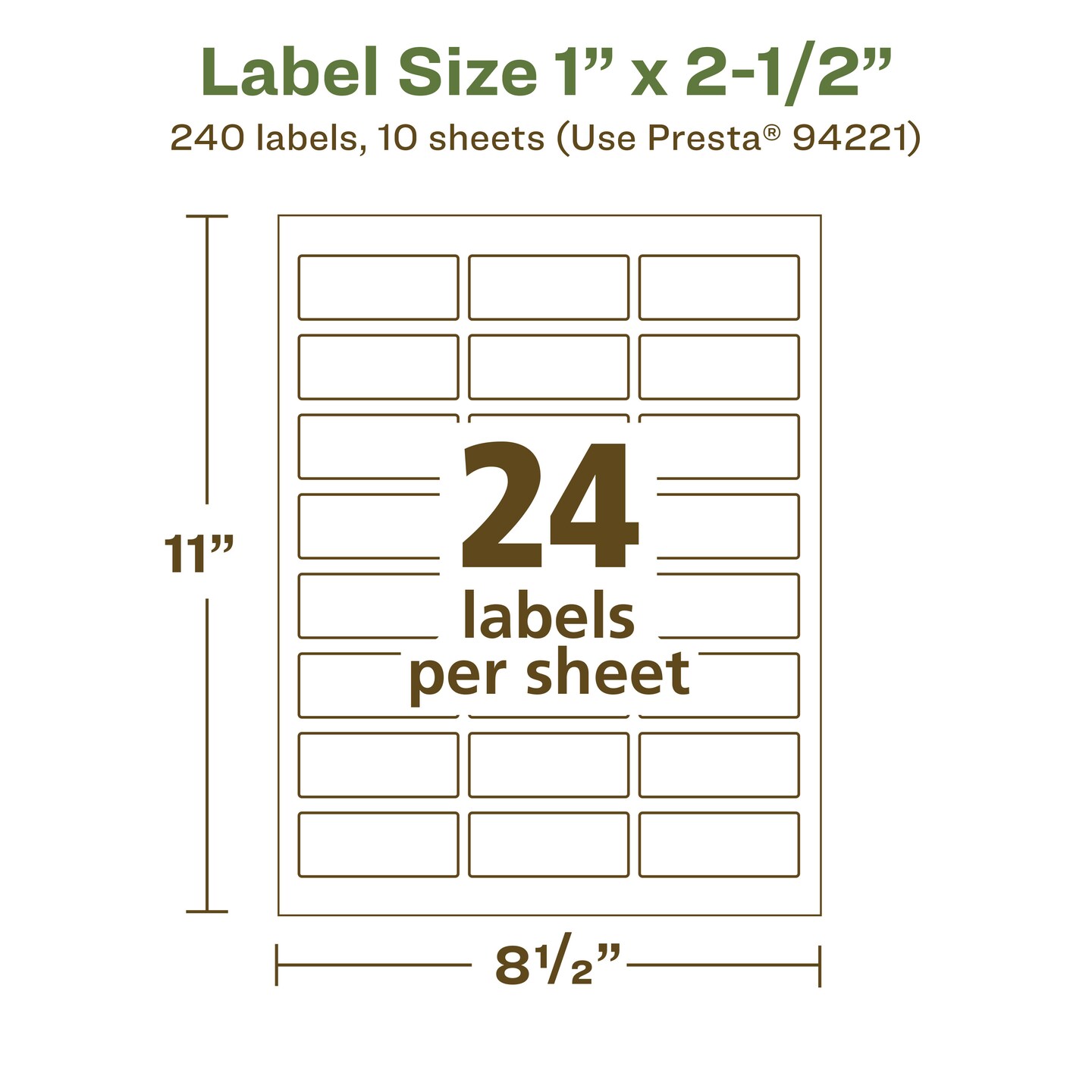 Avery Recycled Matte White Labels, 1" x 2-1/2" Rectangle
