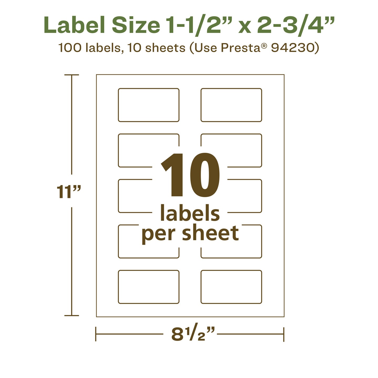 Avery Recycled Matte White Labels, 1-1/2" x 2-3/4" Rectangle