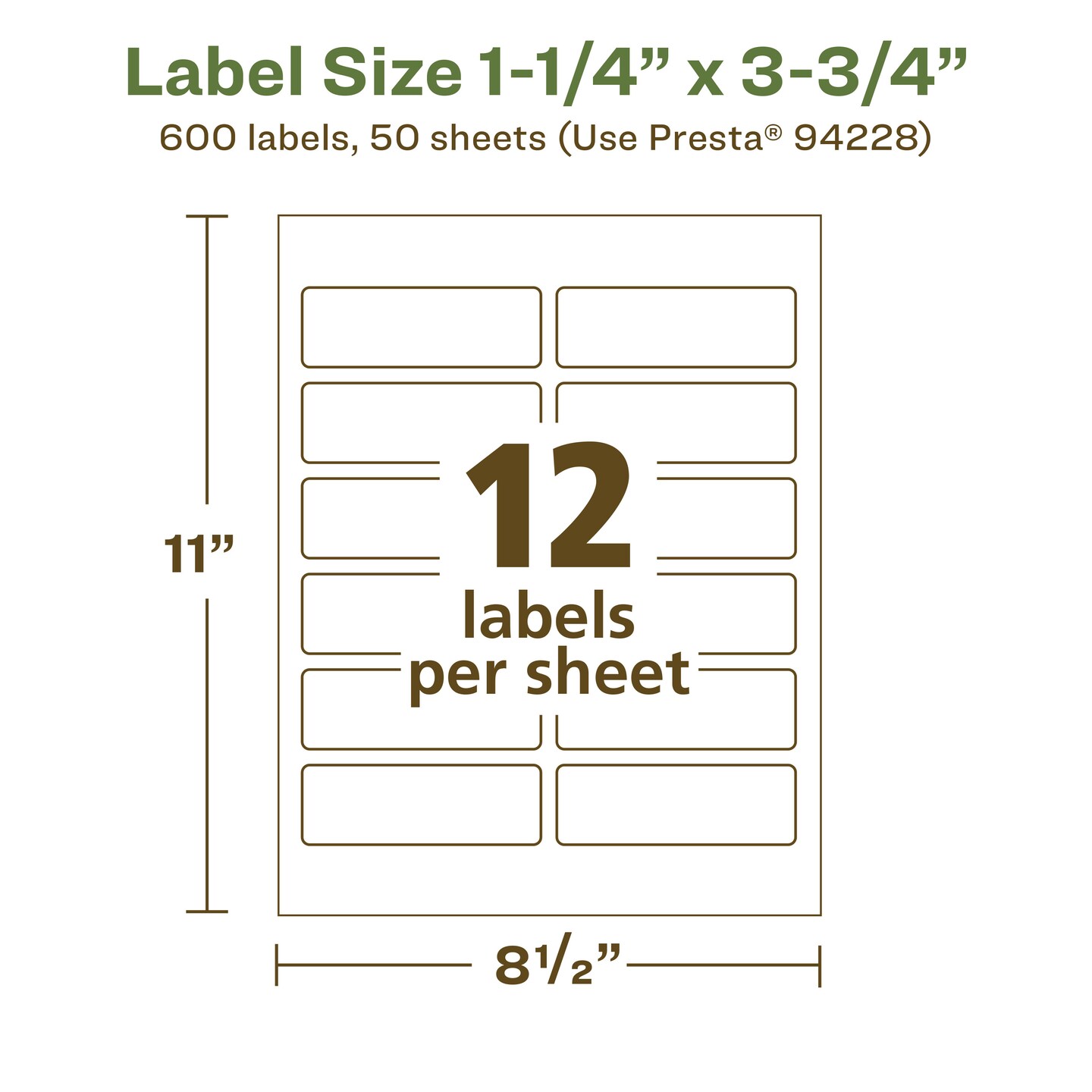 Avery Recycled Matte White Labels, 1-1/4" x 3-3/4" Rectangle