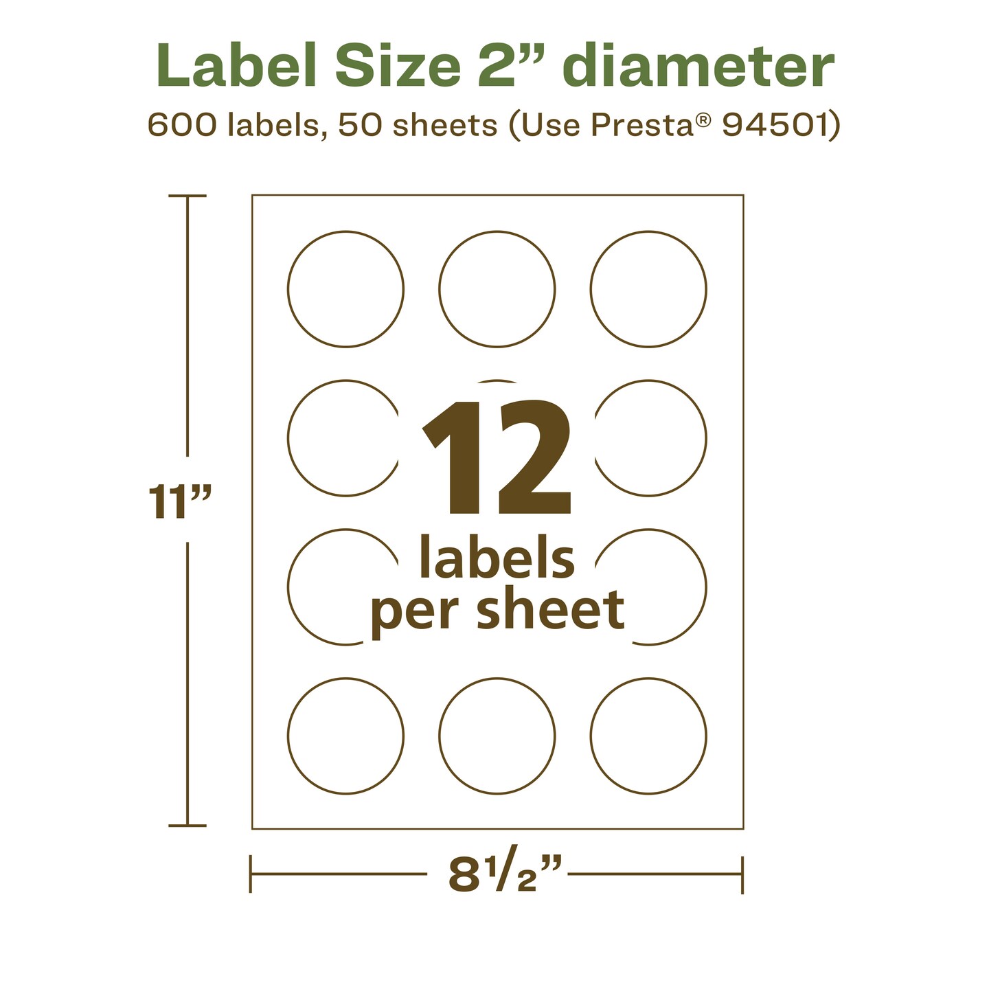 Avery Recycled Matte White Labels,  2" diameter Round