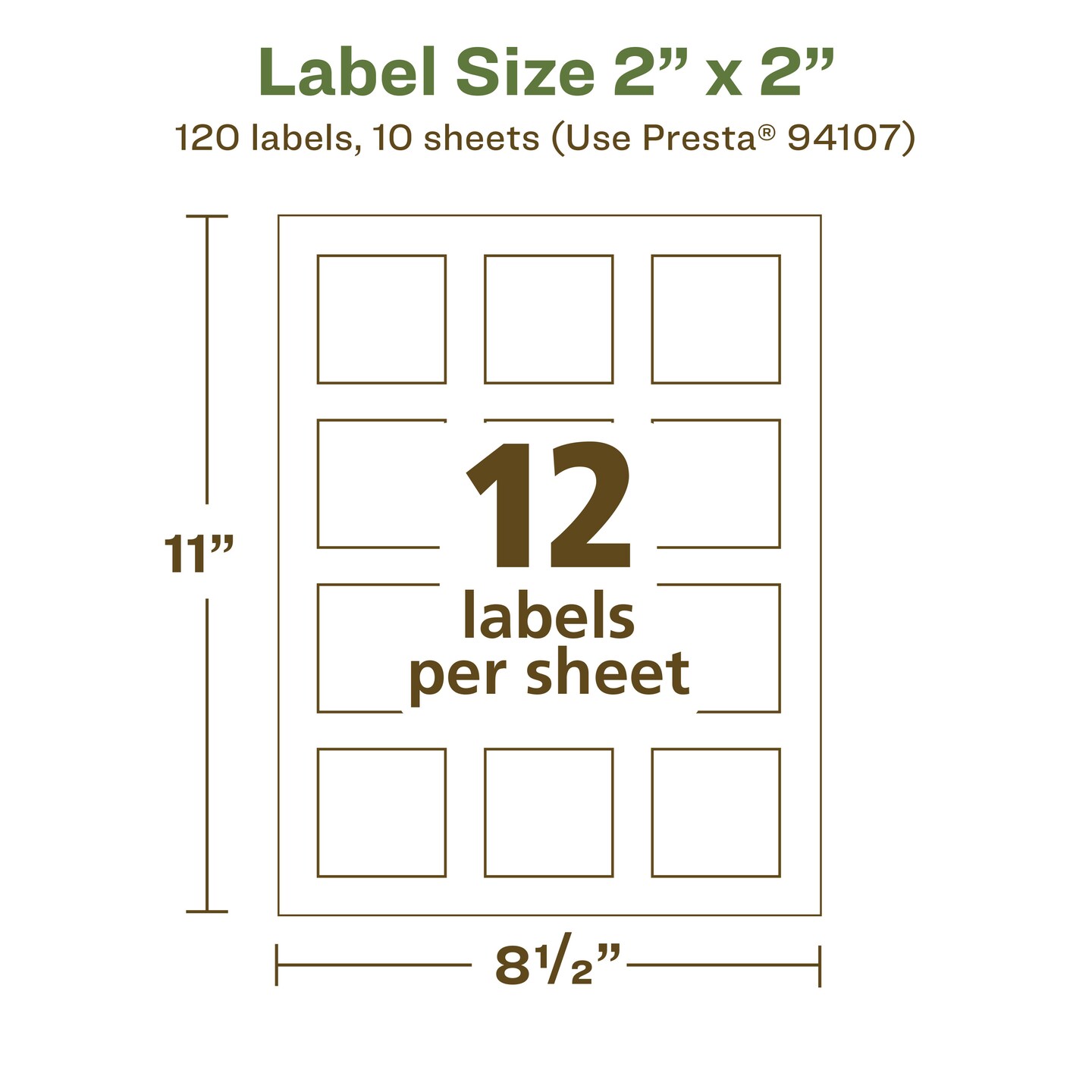 Avery Recycled Matte White Labels,  2" x 2" Square