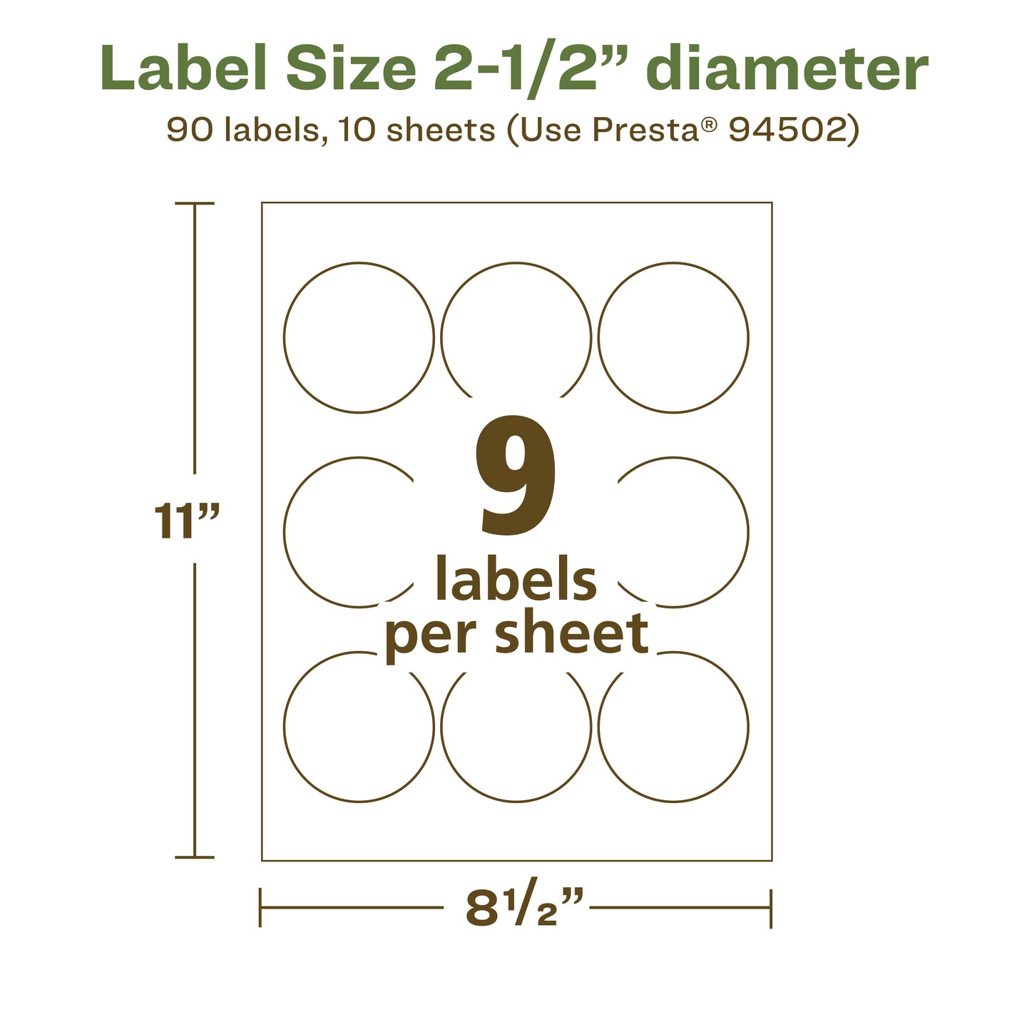 Avery Recycled Matte White Labels, 2-1/2" diameter Round