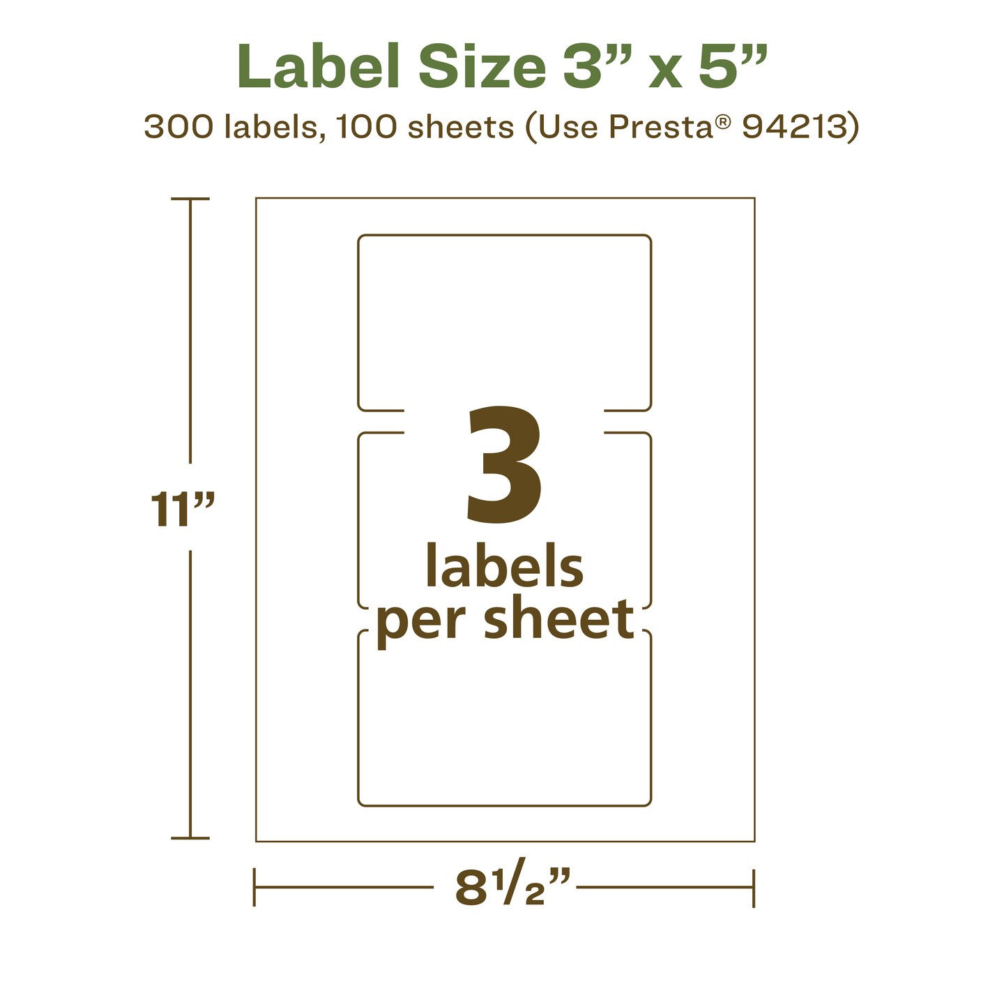 Avery Recycled Matte White Labels, 3" x 5" Rectangle