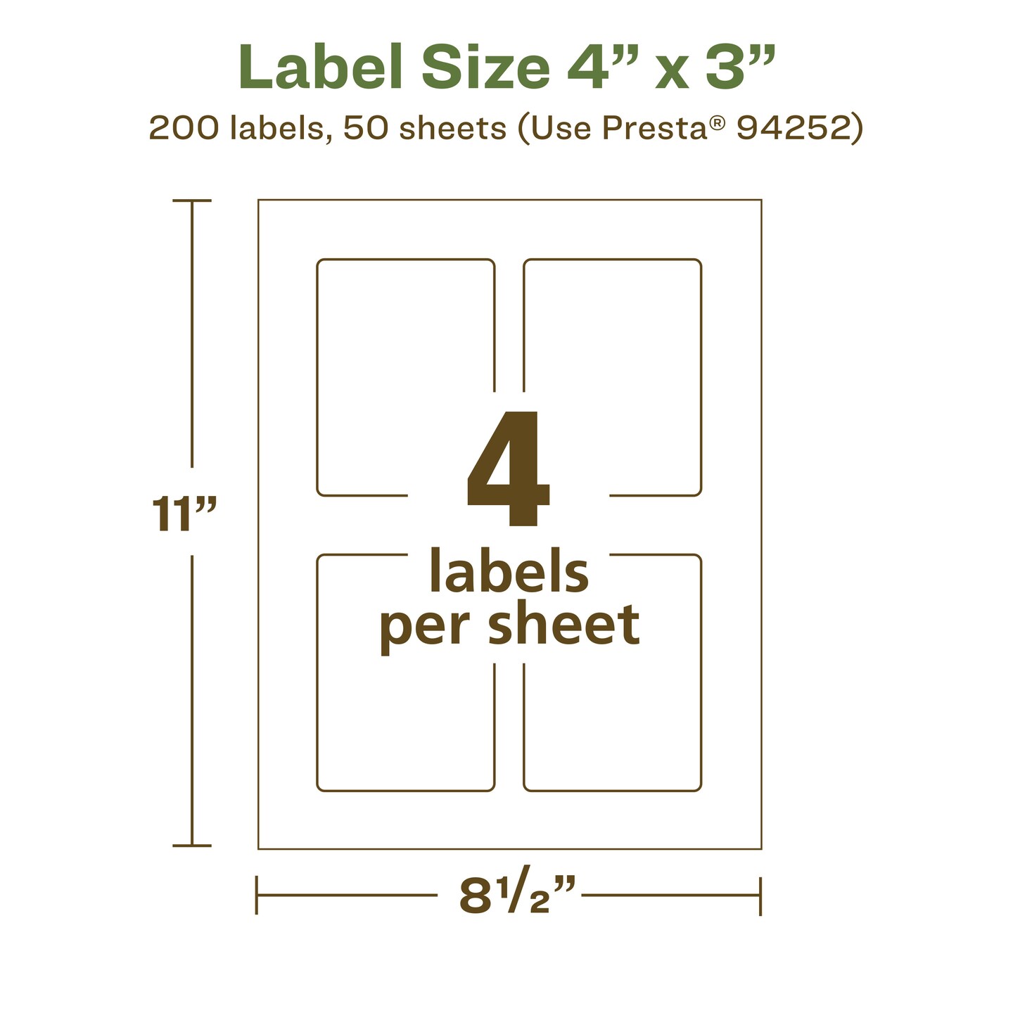 Avery Recycled Matte White Labels, 4" x 3" Rectangle