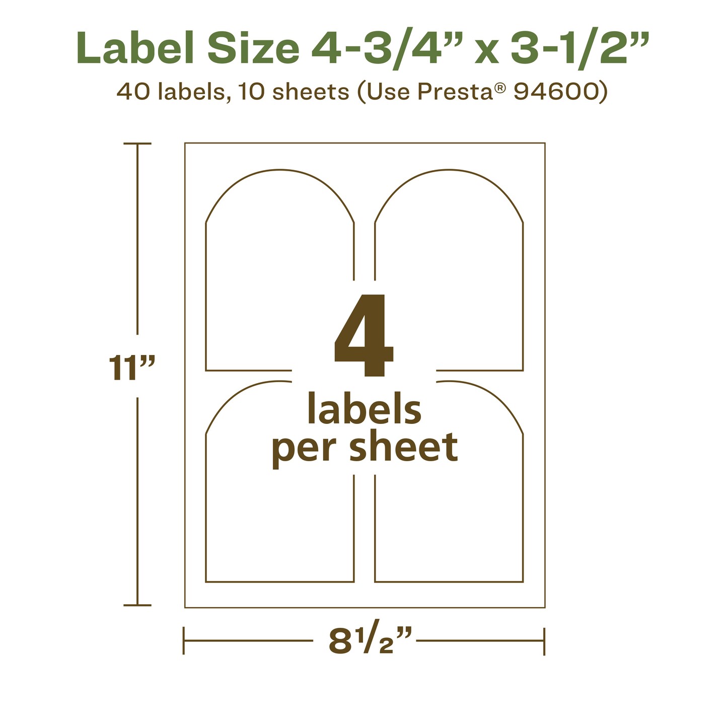 Avery Recycled Matte White Labels, 4-3/4" x 3-1/2" Arched