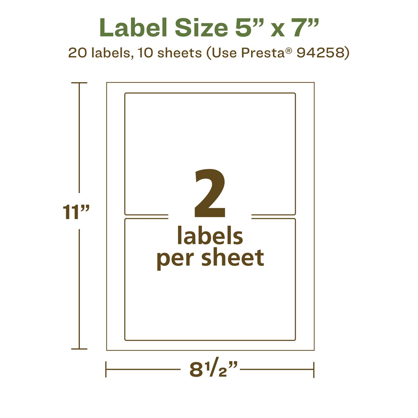 Avery Recycled Matte White Labels,  5" x 7" Rectangle