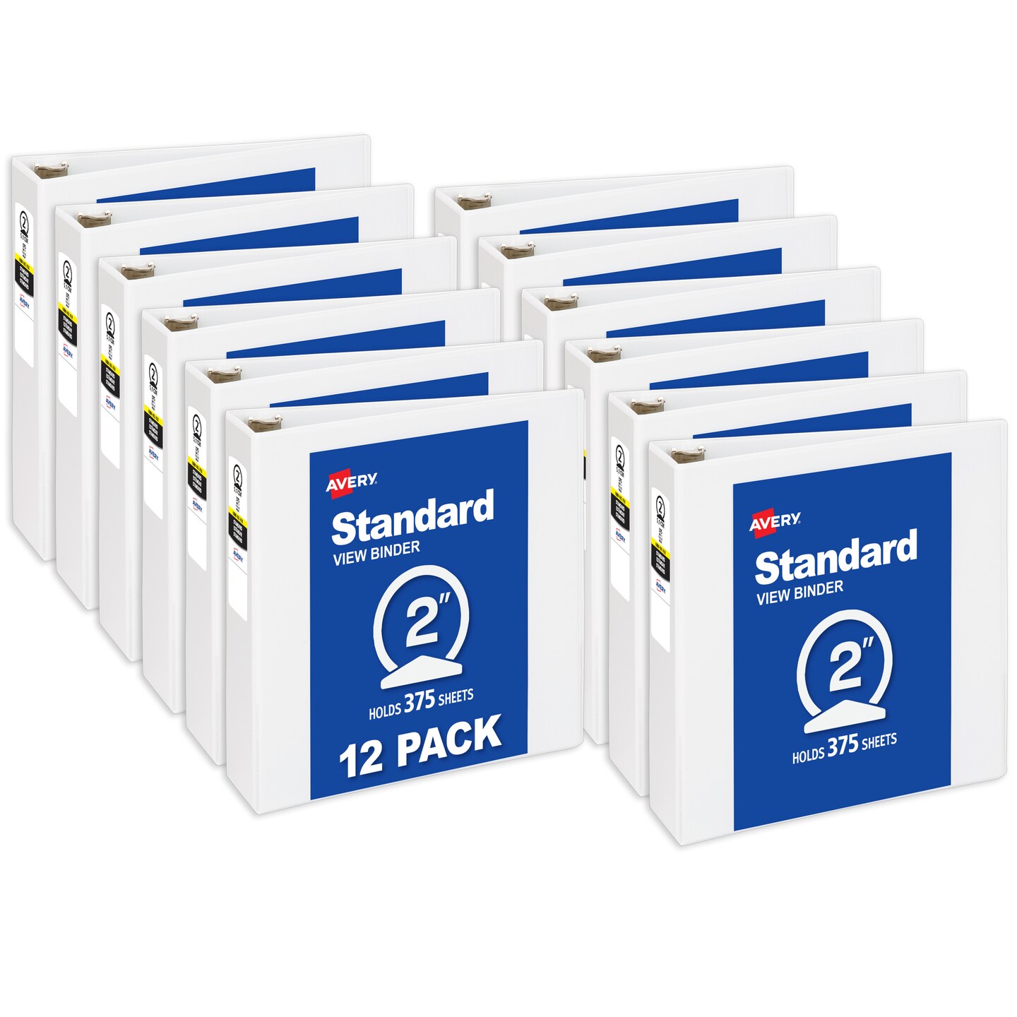 Avery Standard View 3 Ring Binder, 2" Round Rings, 375-Sheet Capacity, 2.8 Inch Wide Spine, 1 White Binder, Ideal for Lightweight Organization and Occasional Referencing (05731) - 12 Pack