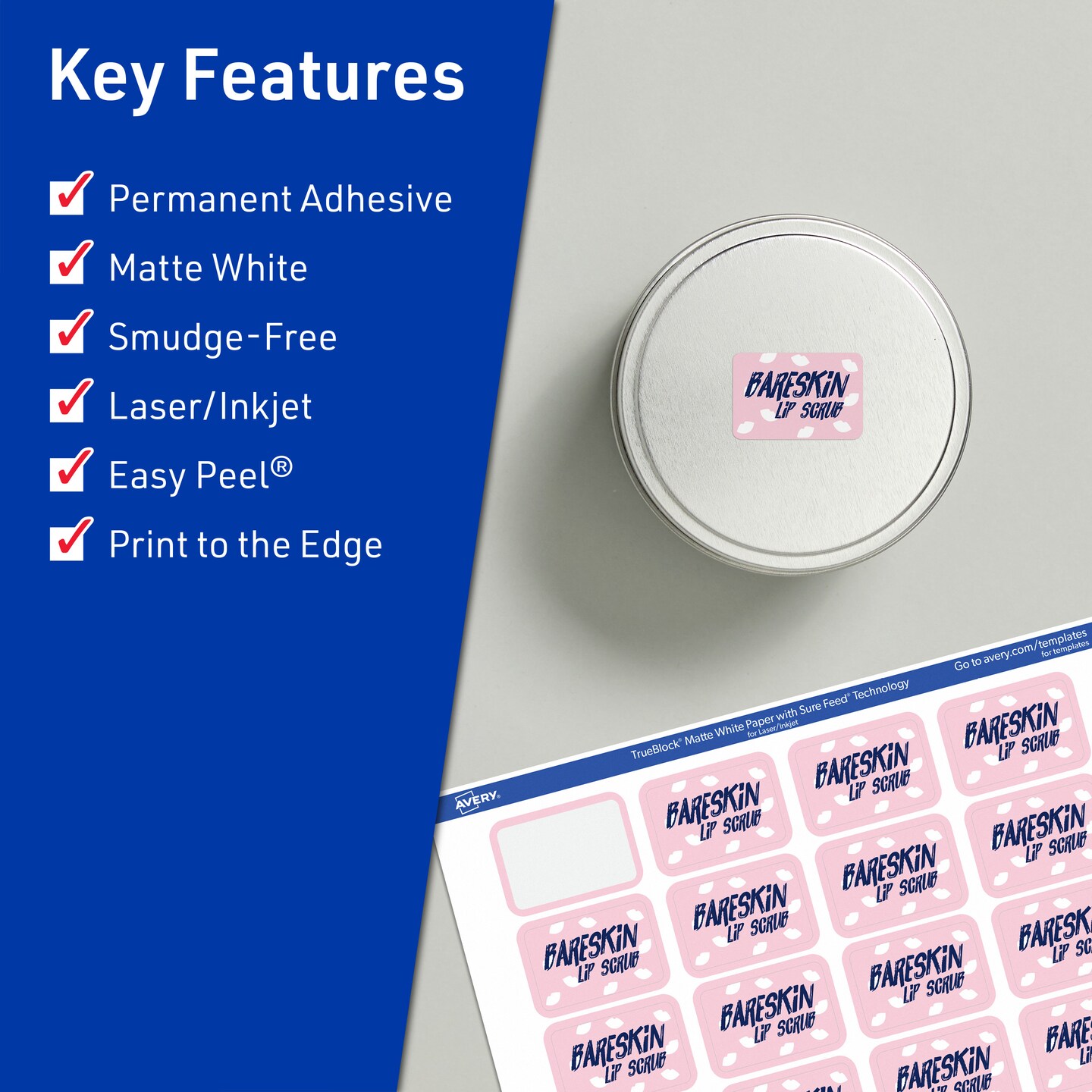 Avery TrueBlock Matte White Paper Labels, 1" x 1-1/2" Rectangle