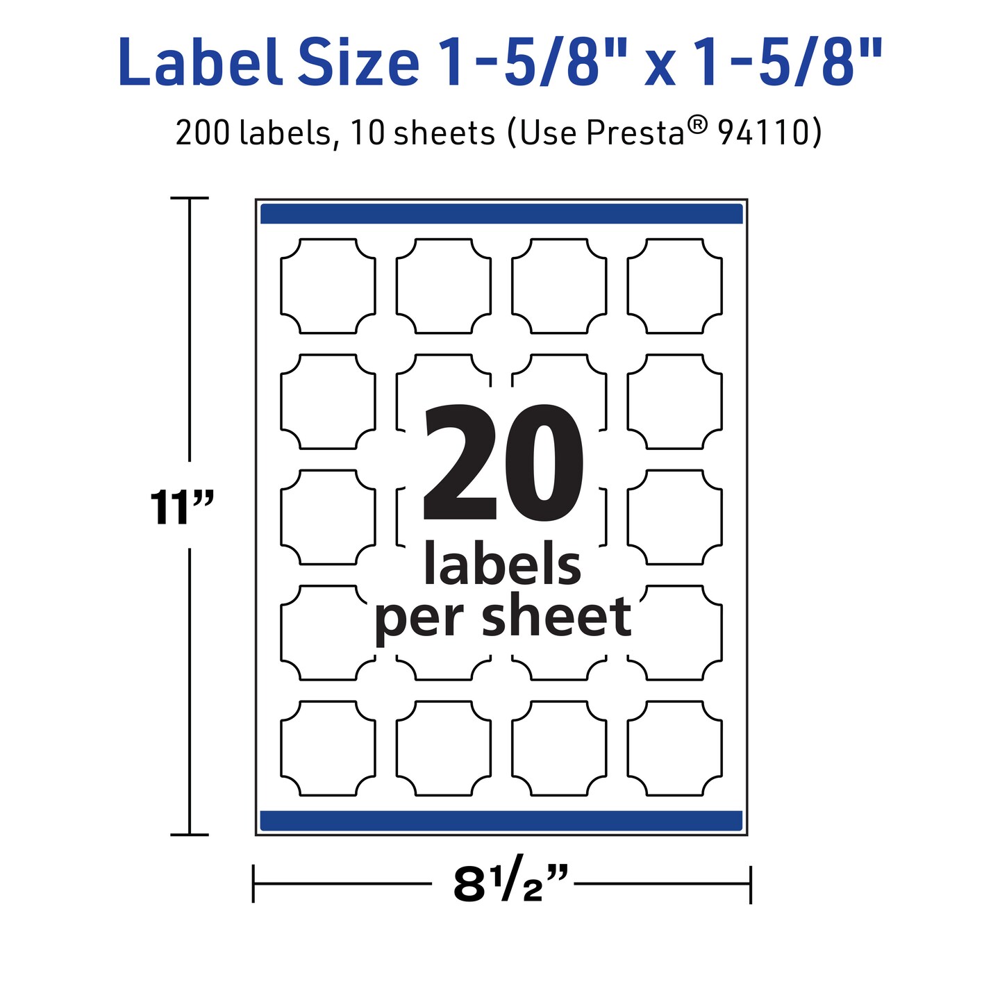 Avery TrueBlock Matte White Paper Labels, 1-5/8" x 1-5/8" Square Scalloped