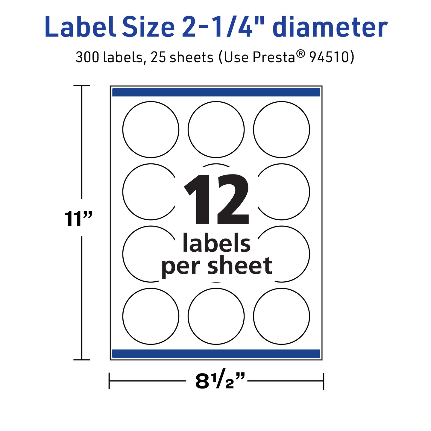 Avery TrueBlock Matte White Paper Labels, 2-1/4" diameter Round
