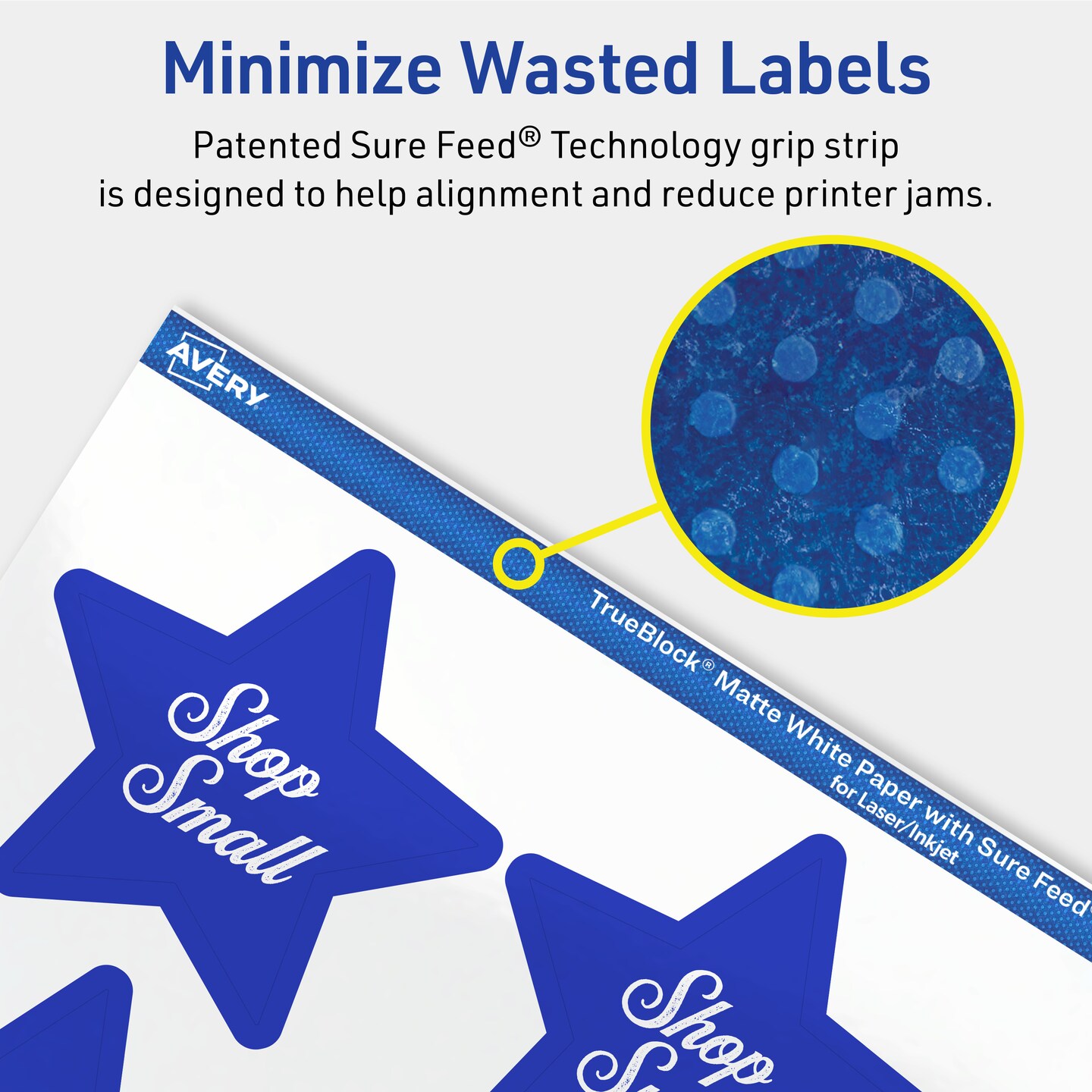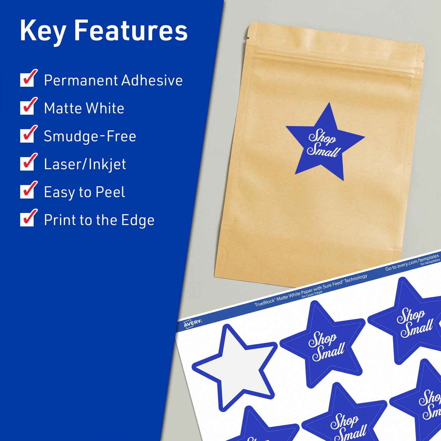 Avery TrueBlock Matte White Paper Labels, 2-1/4" x 2-3/8" Star
