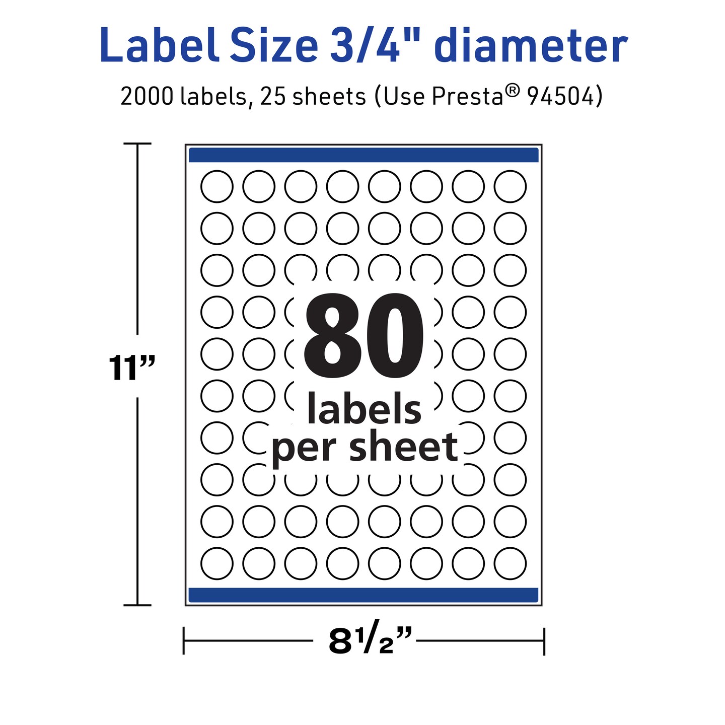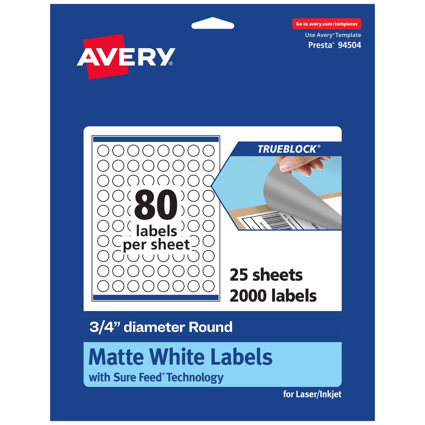 Avery TrueBlock Matte White Paper Labels, 3/4" diameter Round