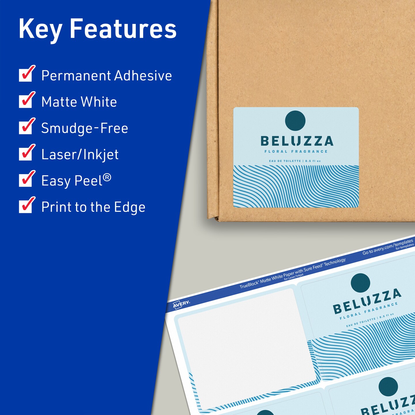 Avery TrueBlock Matte White Paper Labels, 4-3/4" x 3-3/4" Rectangle