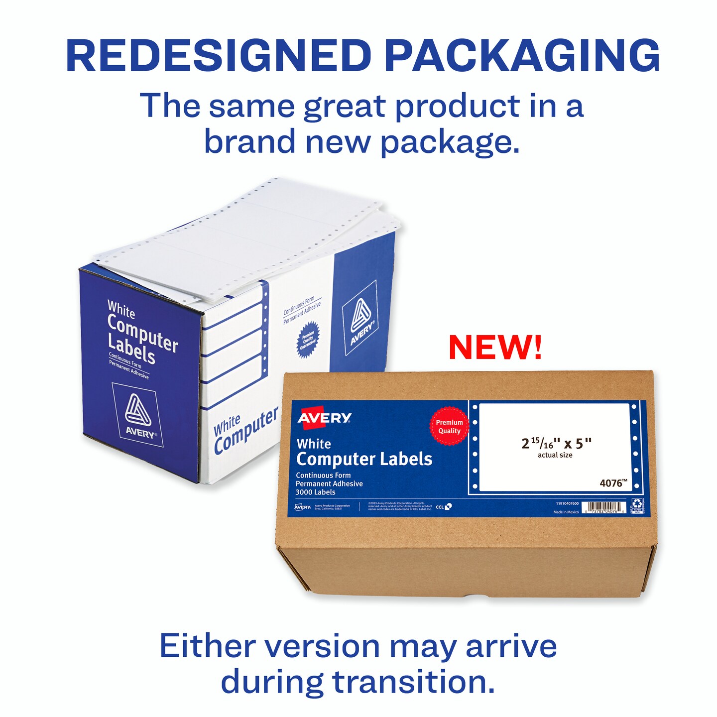 Avery White Computer Labels, 2-15/16" x 5", Dot Matrix Labels and Pin-Feed Labels, 3,000 Total (4076)
