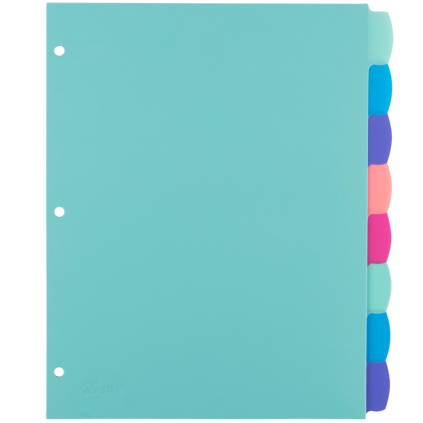 Avery Write & Erase Dividers for 3 Ring Binders, 8 Tabs per Set, Multicolor Big Tabs, Pastels, Binder Dividers Great for Organizing Reports, Projects, and More (16271)