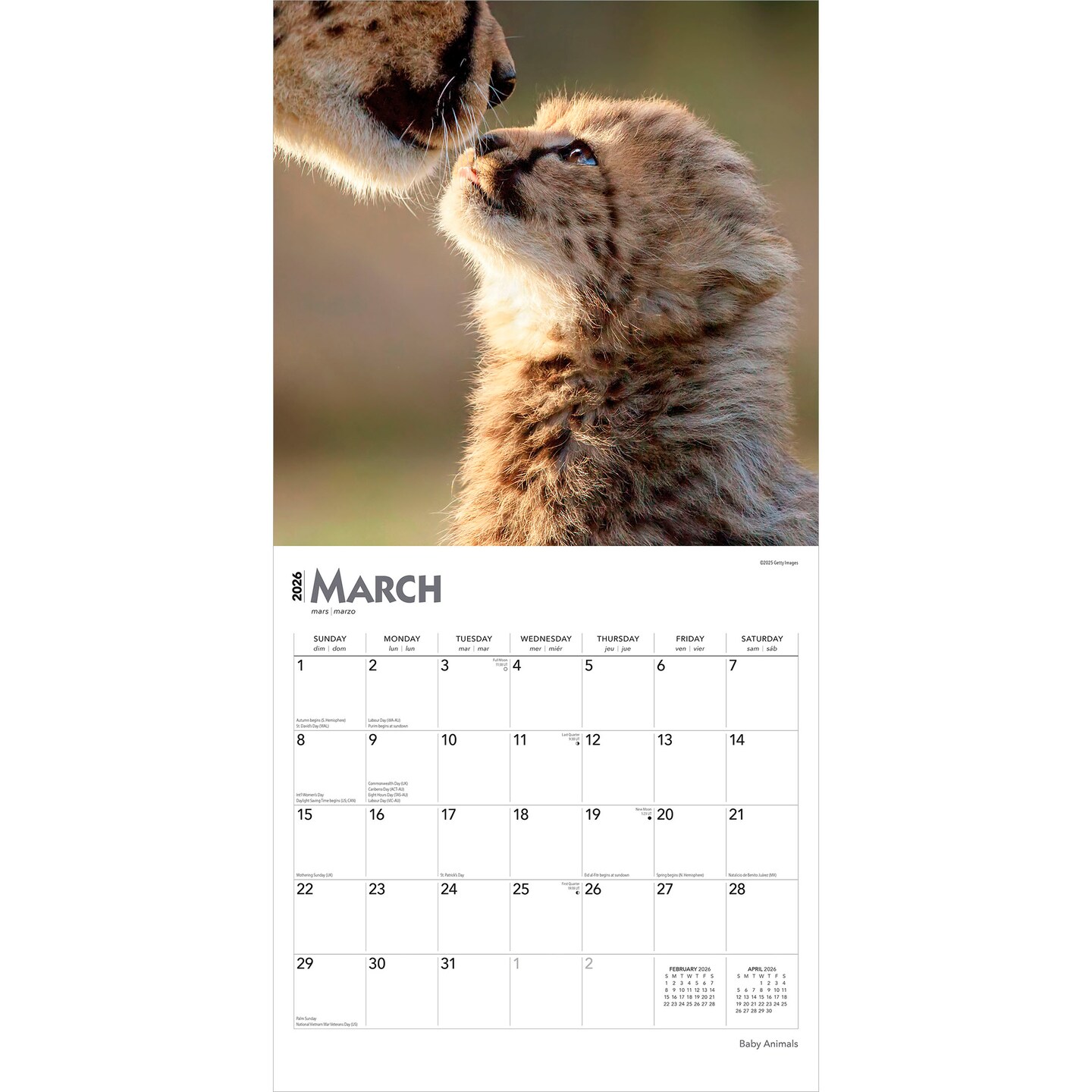 Baby Animals | 2026 12 x 24 Inch (Hanging) Monthly Square Wall Calendar | Plastic-Free