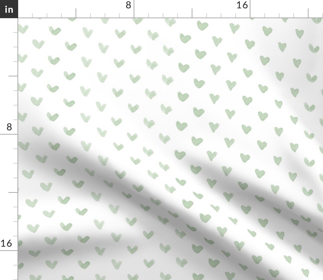 Baby Blanket Sage Green Heart Love Wedding Nursery Valentine White Custom Printed Fabric by Spoonflower Various Fabrics by the Yard or Fat Quarter