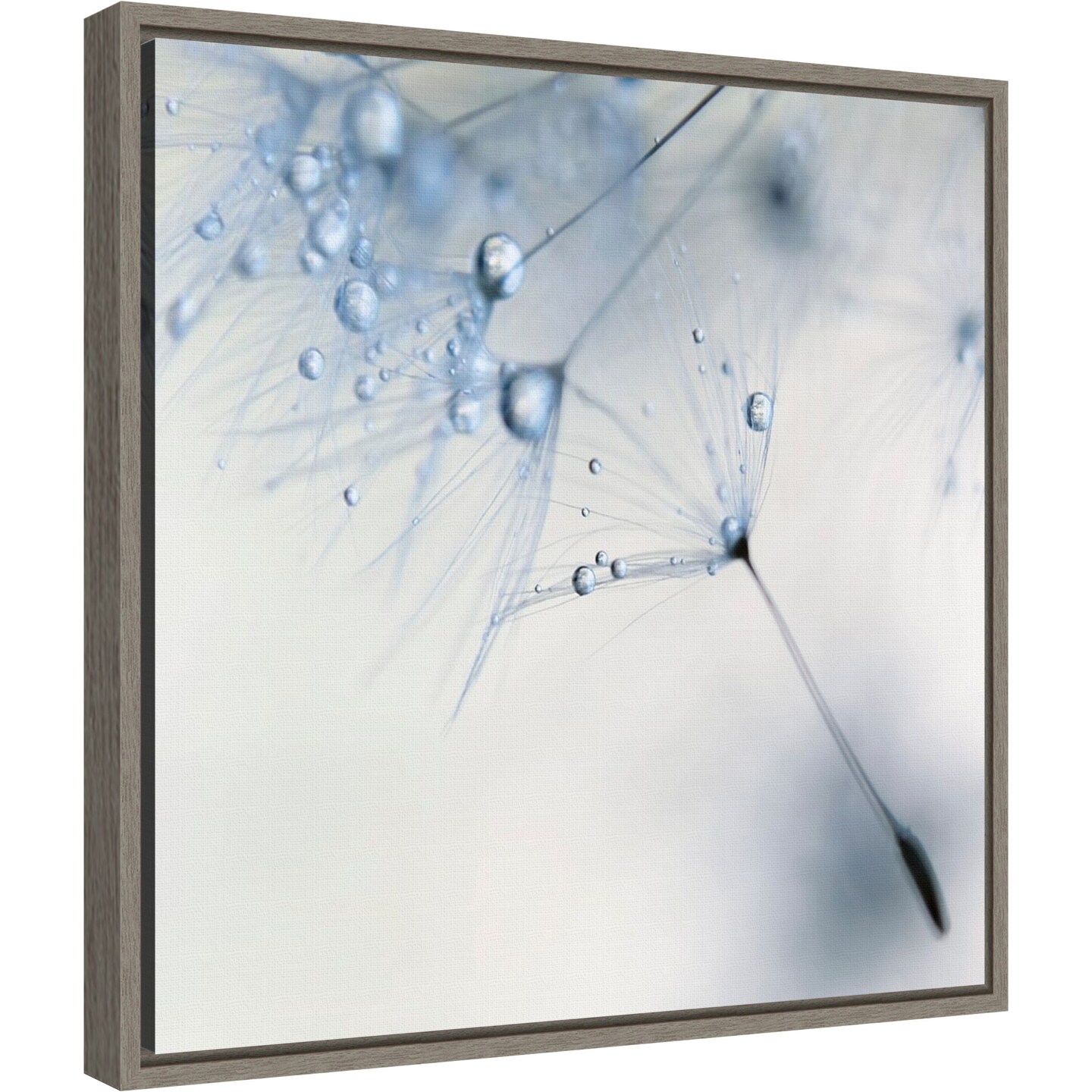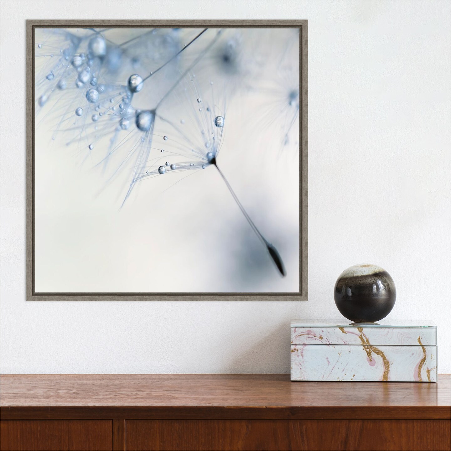 Baby Blue Dandelion Flower by Ingrid Beddoes 16-in. W x 16-in. H. Canvas Wall Art Print Framed in Grey