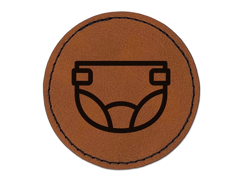 Baby Diaper Round Iron-On Engraved Faux Leather Patch Applique - 2.5"