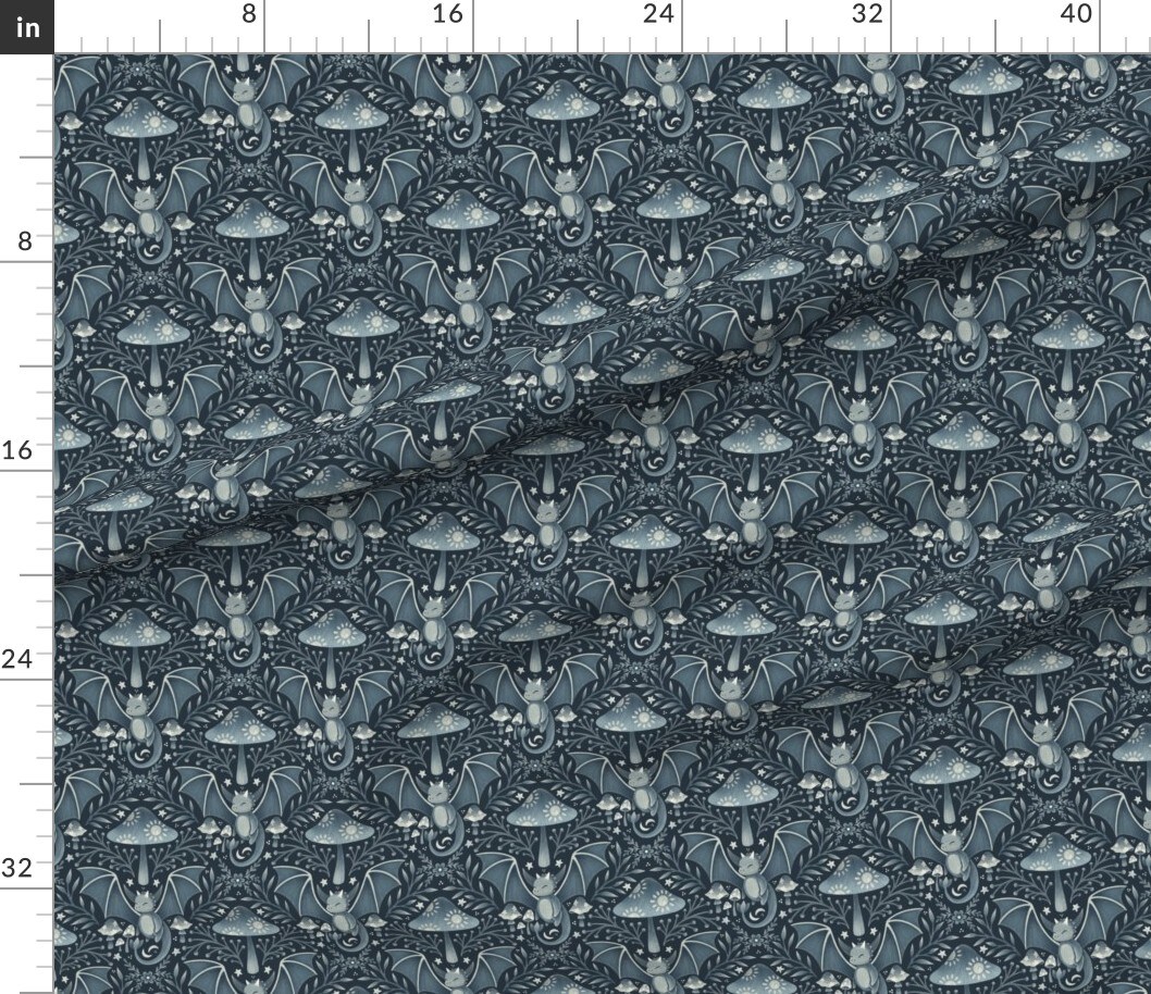Baby Dragon Bohemian Botanical Magical Guardian Farmhouse Safe Cottagecore Dark Teal Gray Custom Printed Fabric by Spoonflower Various Fabrics by the Yard or Fat Quarter
