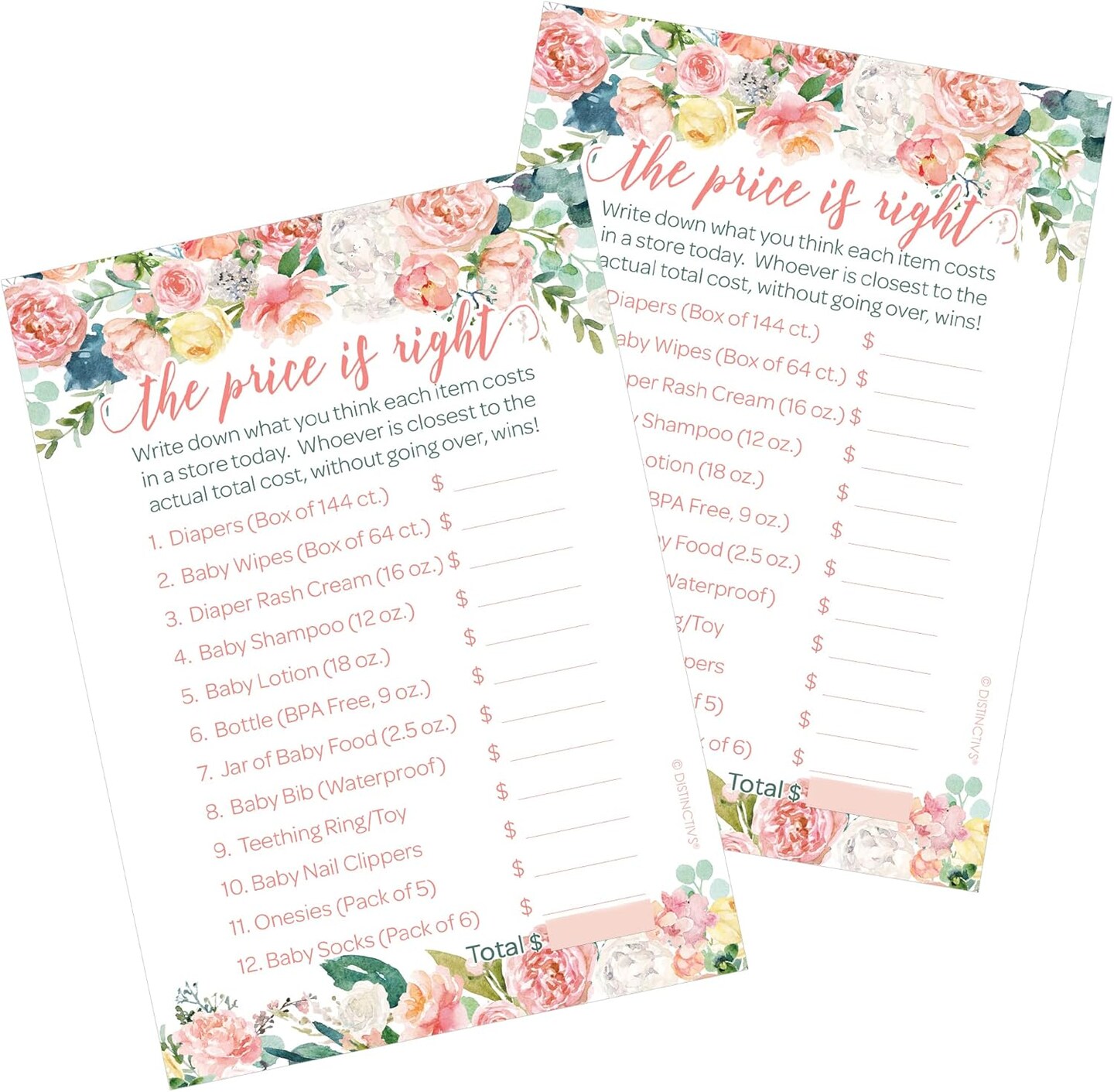 Baby in Bloom Baby Shower Price is Right Game, Pink Floral Boho Girl Baby Shower Game Cards