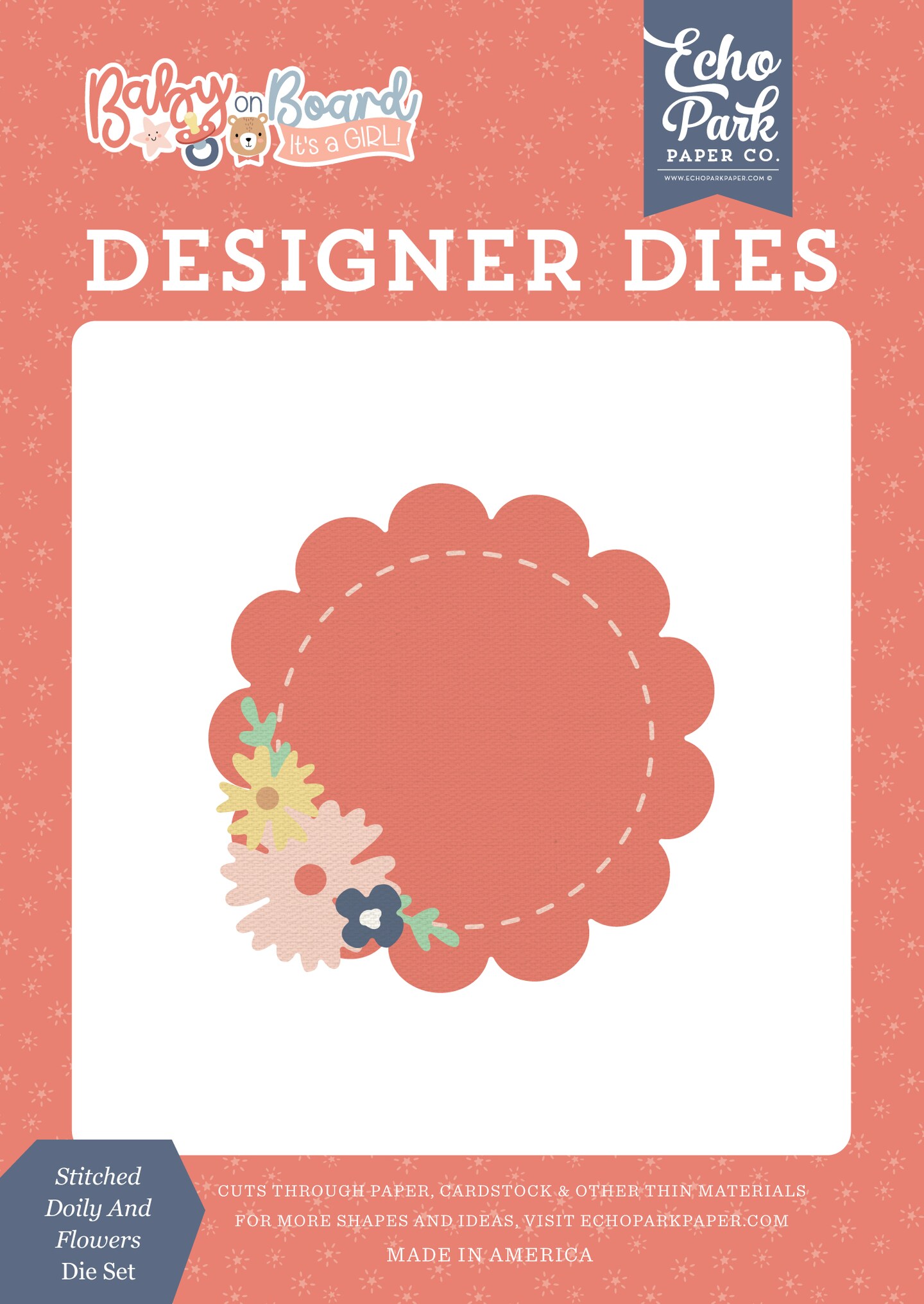 Baby On Board - Girl: Stitched Doily And Flowers Medium Die Set