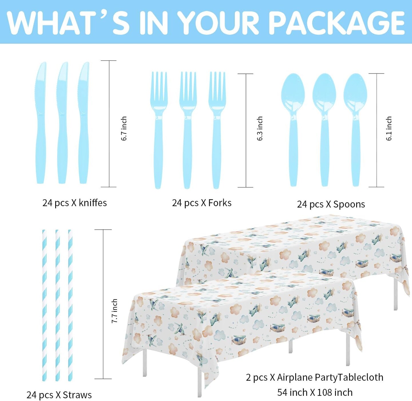 Baby Shower Airplane Party Decorations Tableware - Serves 24 (Blue)