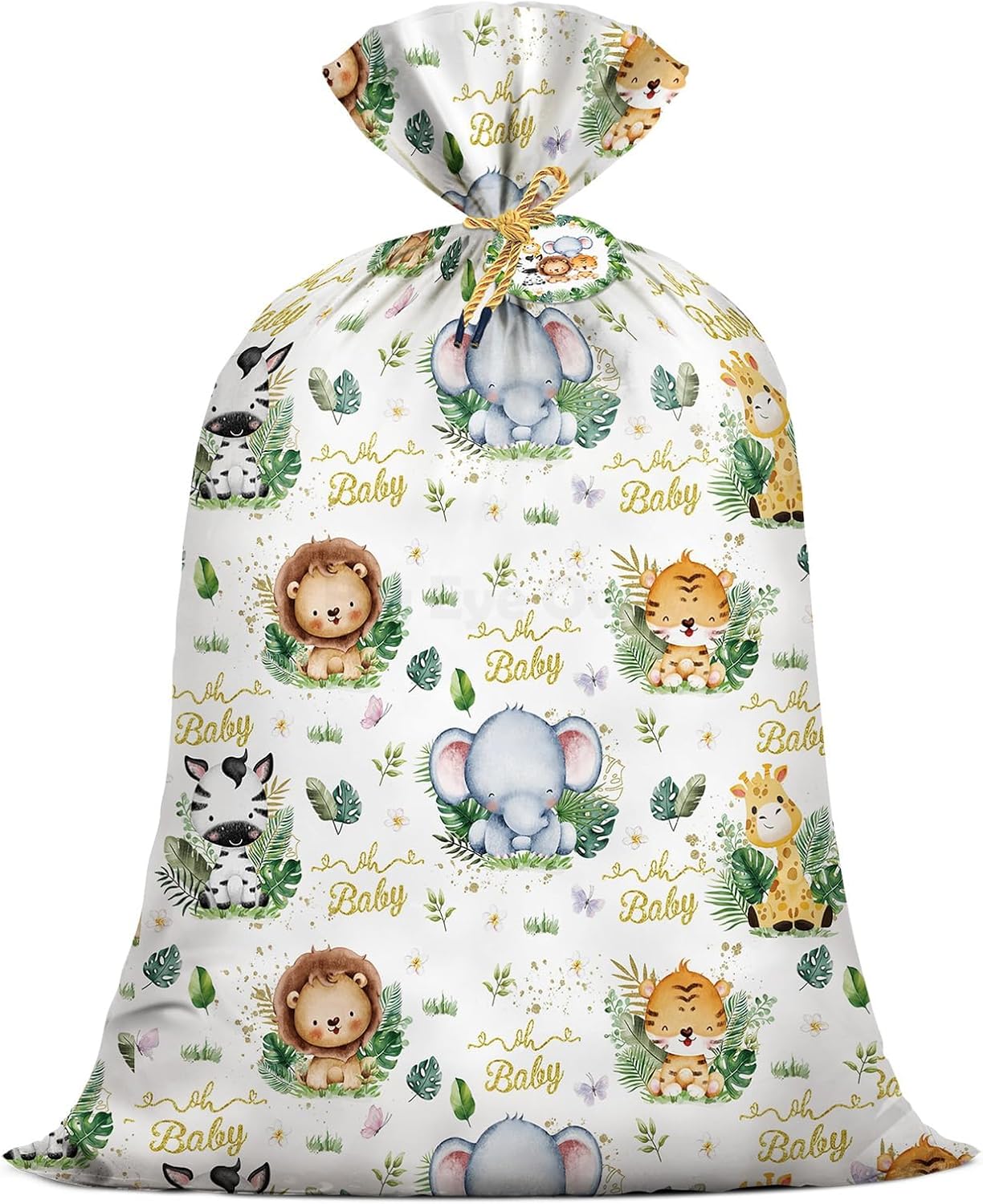 Baby Shower Bags Safari Jungle Animals Gift Bags Plastic Present Bag Gift Wrap Baby Shower Gender Reveal Party Birthday Party Favors Supplies with Ropes