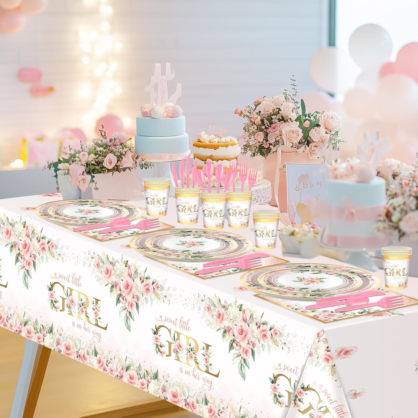 Baby Shower Decorations for Girl 278 Pcs Pink Floral (Rose Gold)