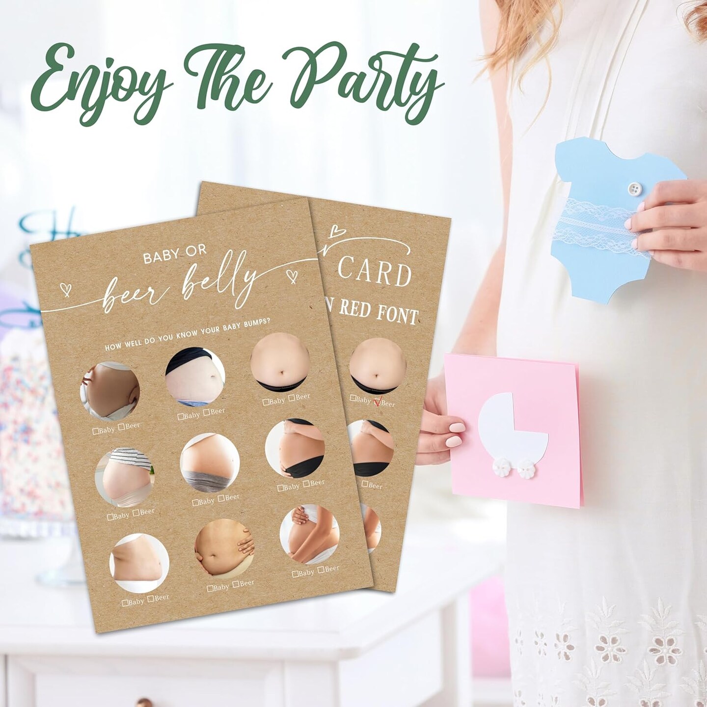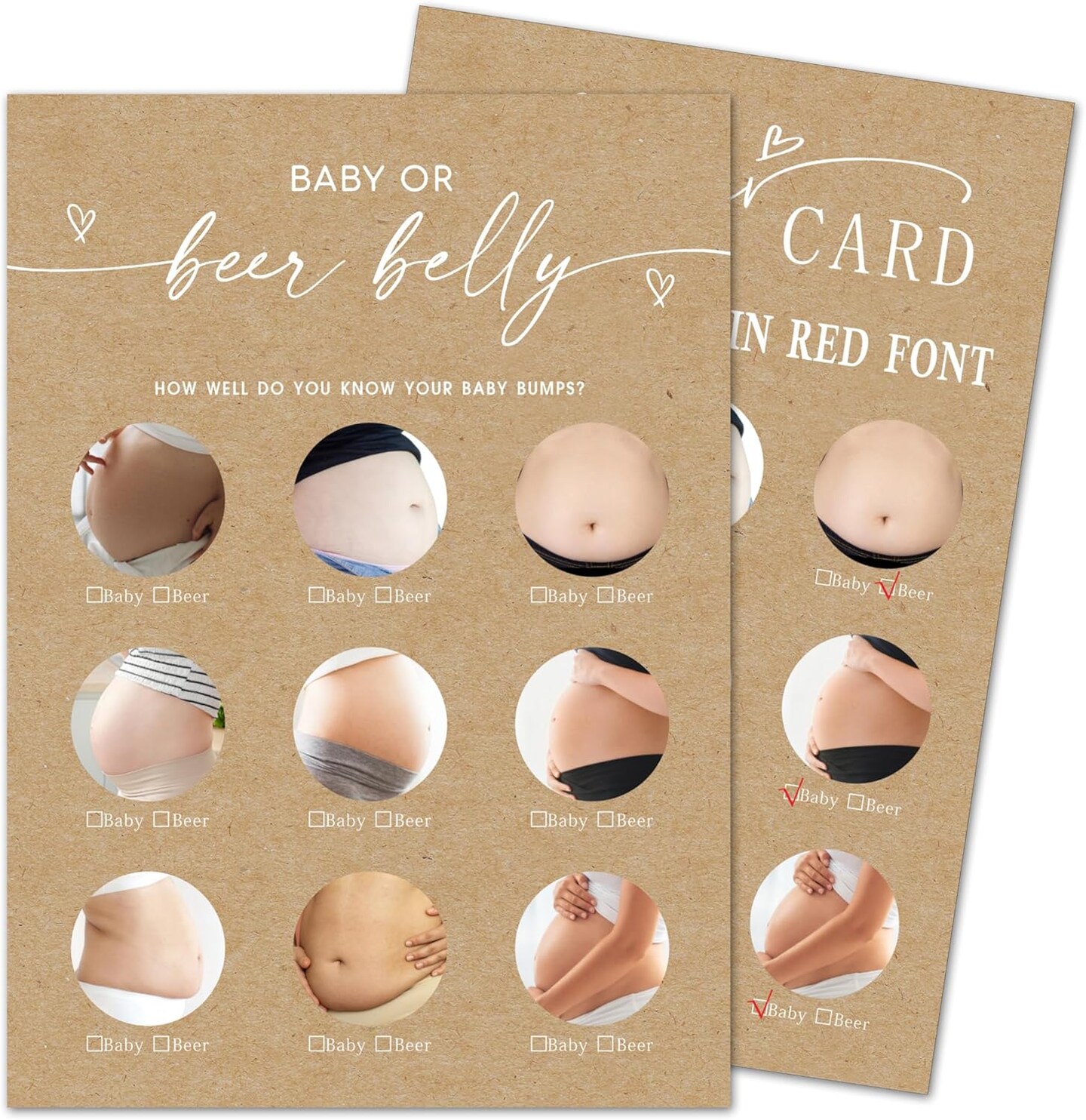 Baby Shower Game Cards - Set of 30 Baby Or Beer Belly - Double Sided Print Baby Announcement Gender Reveal Game Card for Parents to Be