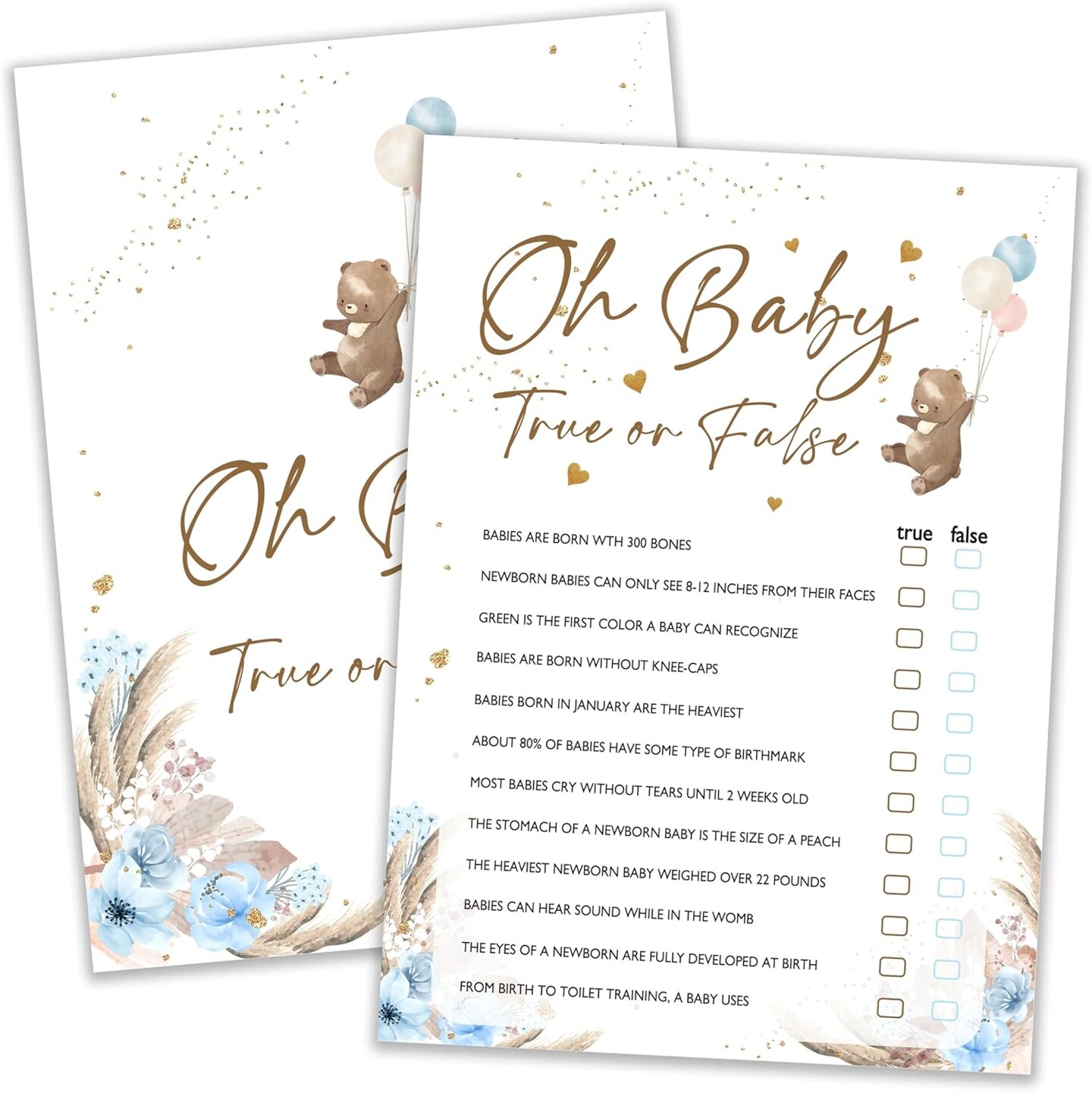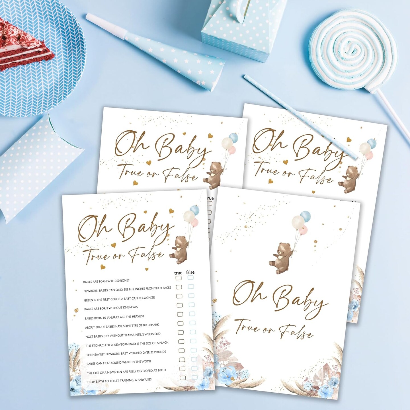 Baby Shower Games, Oh Baby True Or False, Bear Themed Blue Party Games for 25 Players, Gender Neutral