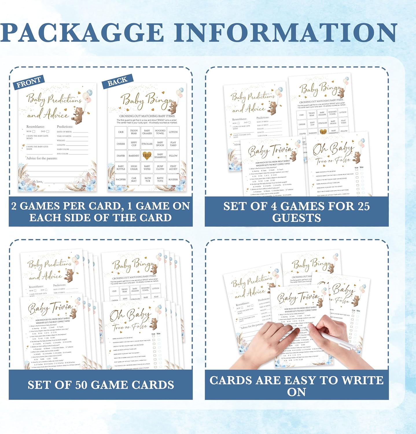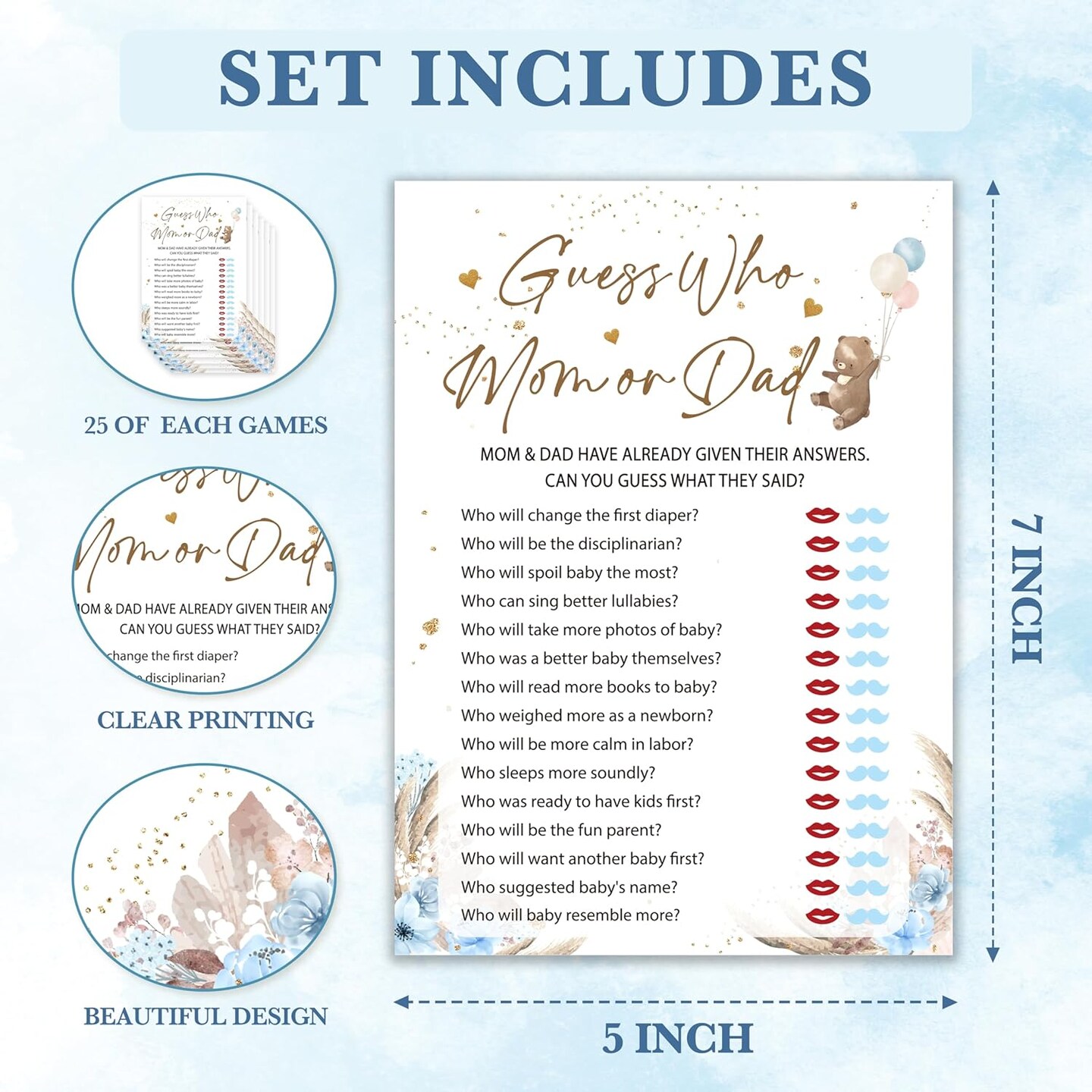Baby Shower Games, Who Mommy Or Daddy Game, Bear Themed Blue Baby Shower Games Card for 25 Players
