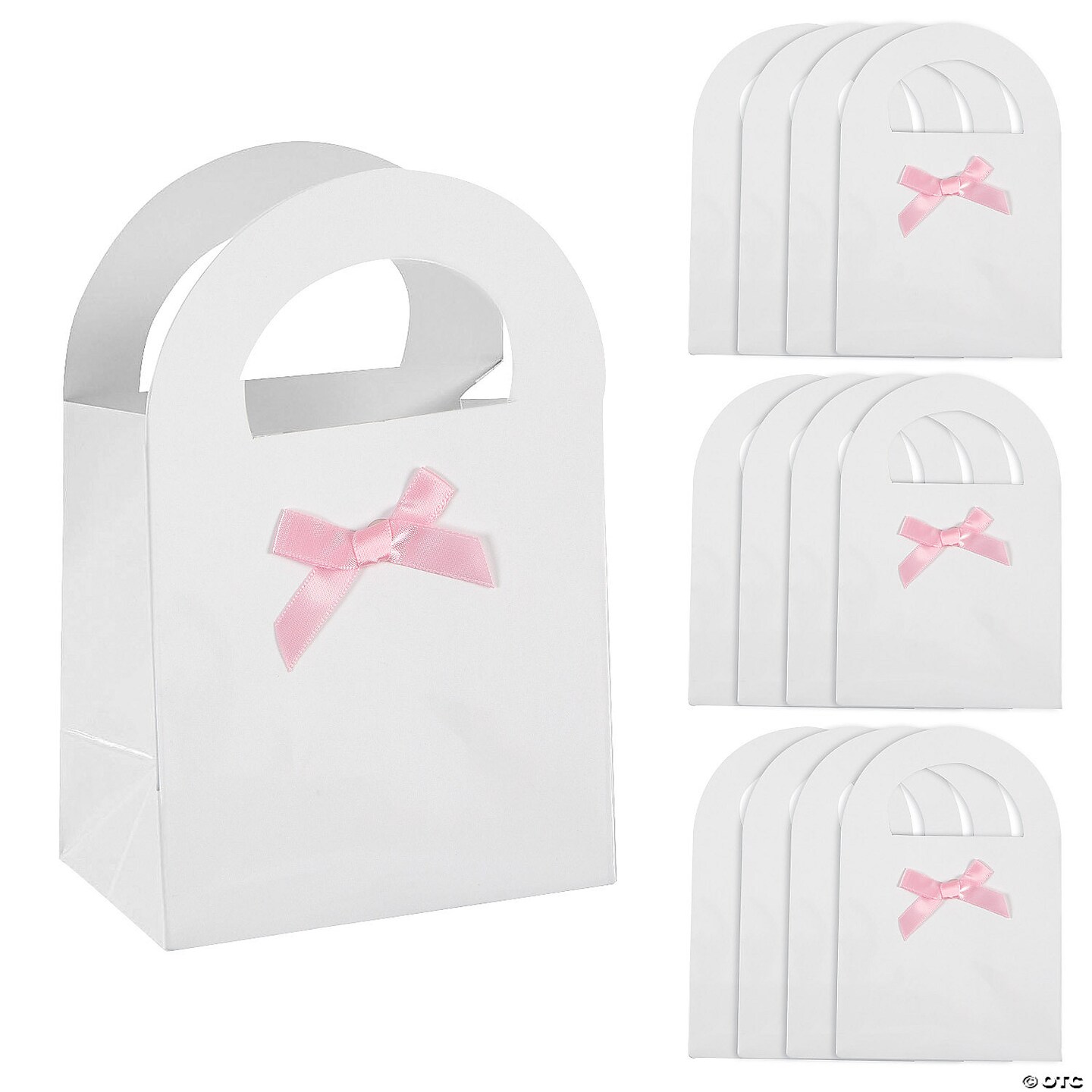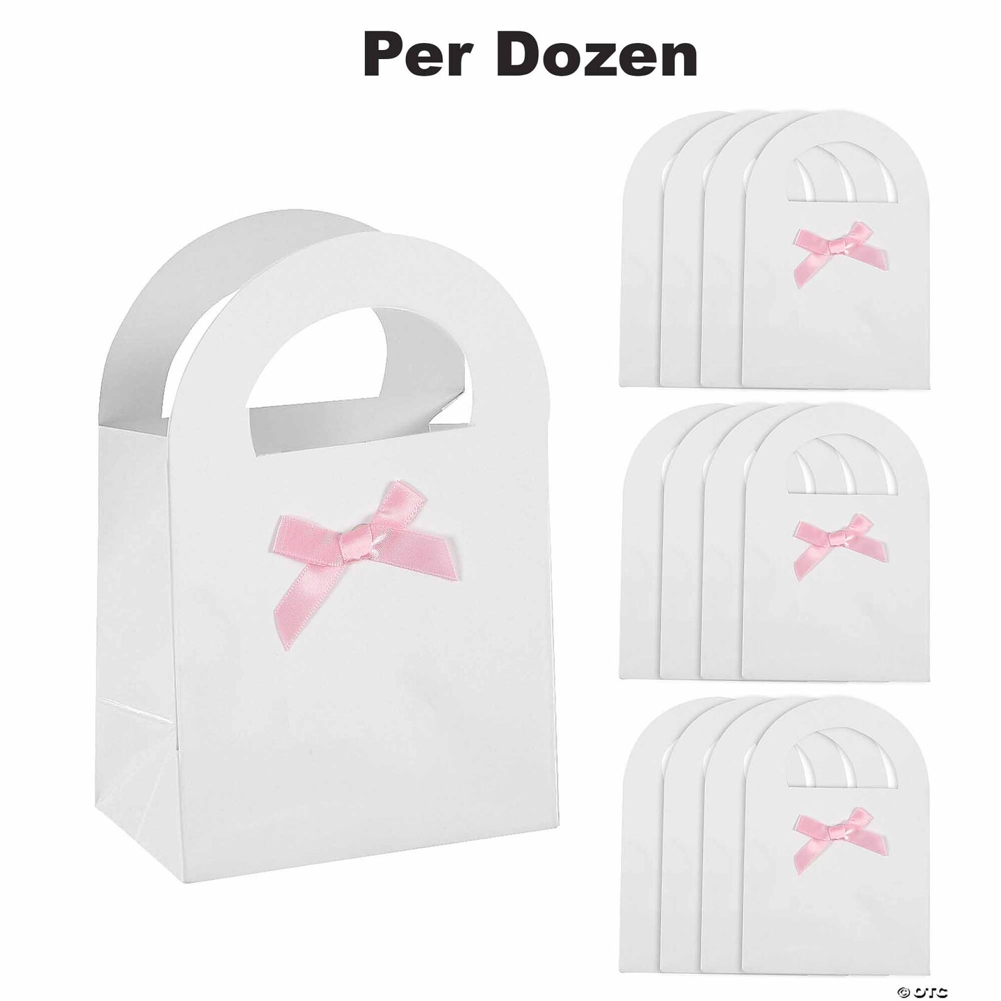 Baby Shower Paper Treat Bags with Pink Bow - 12 Pc