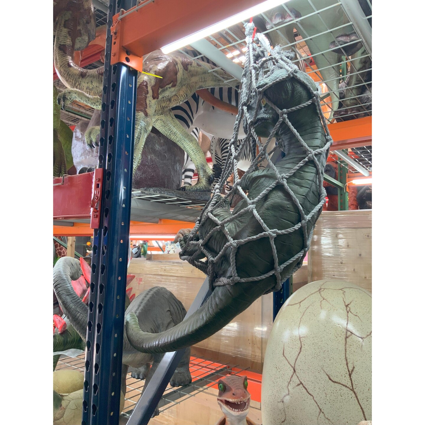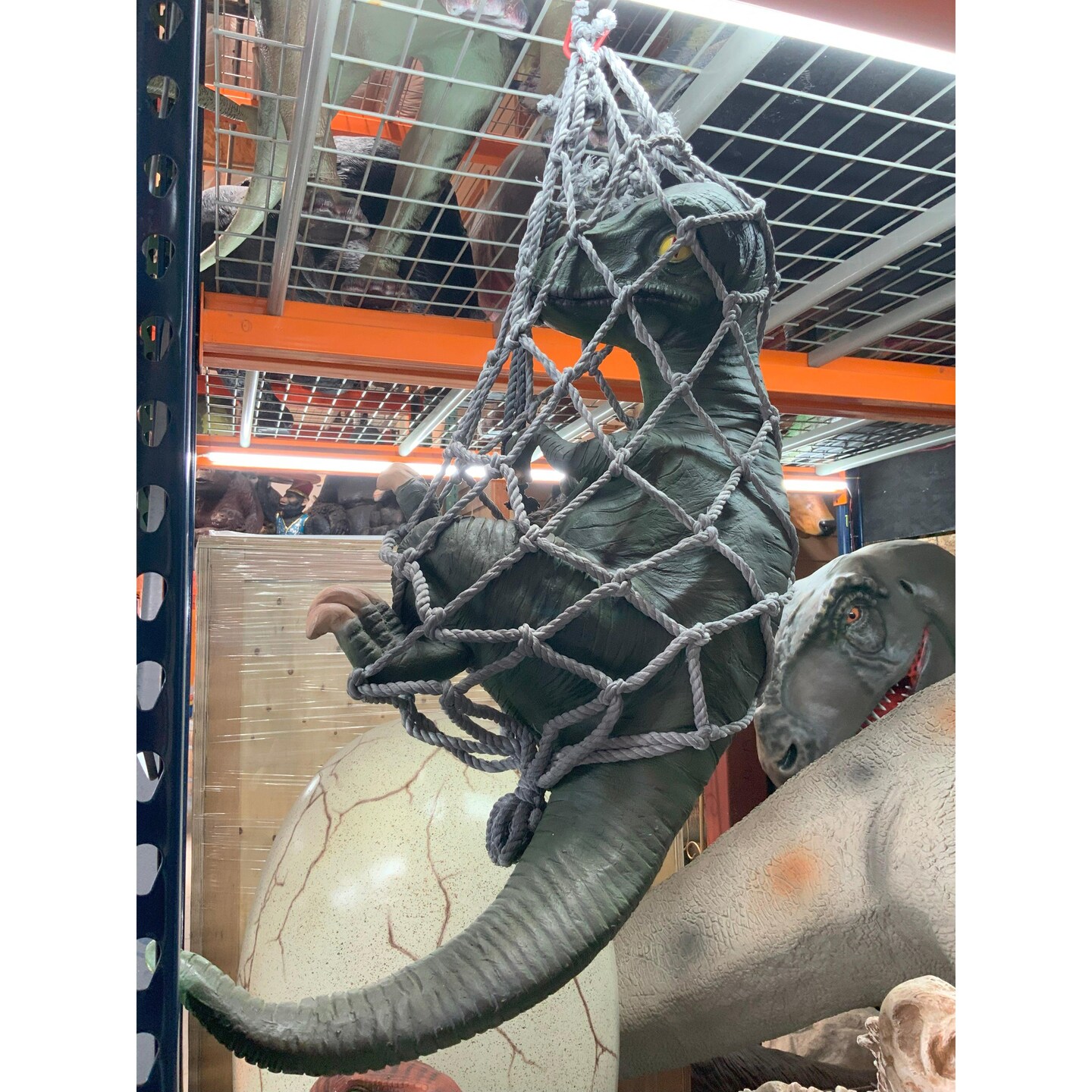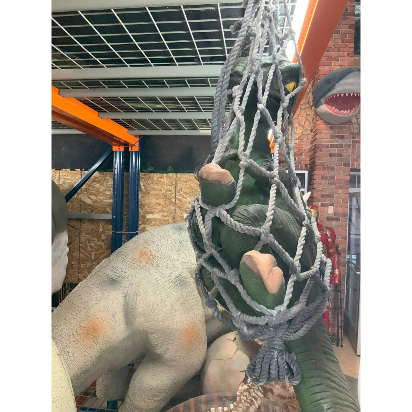 Baby T-Rex Dinosaur In Net Life Size Statue